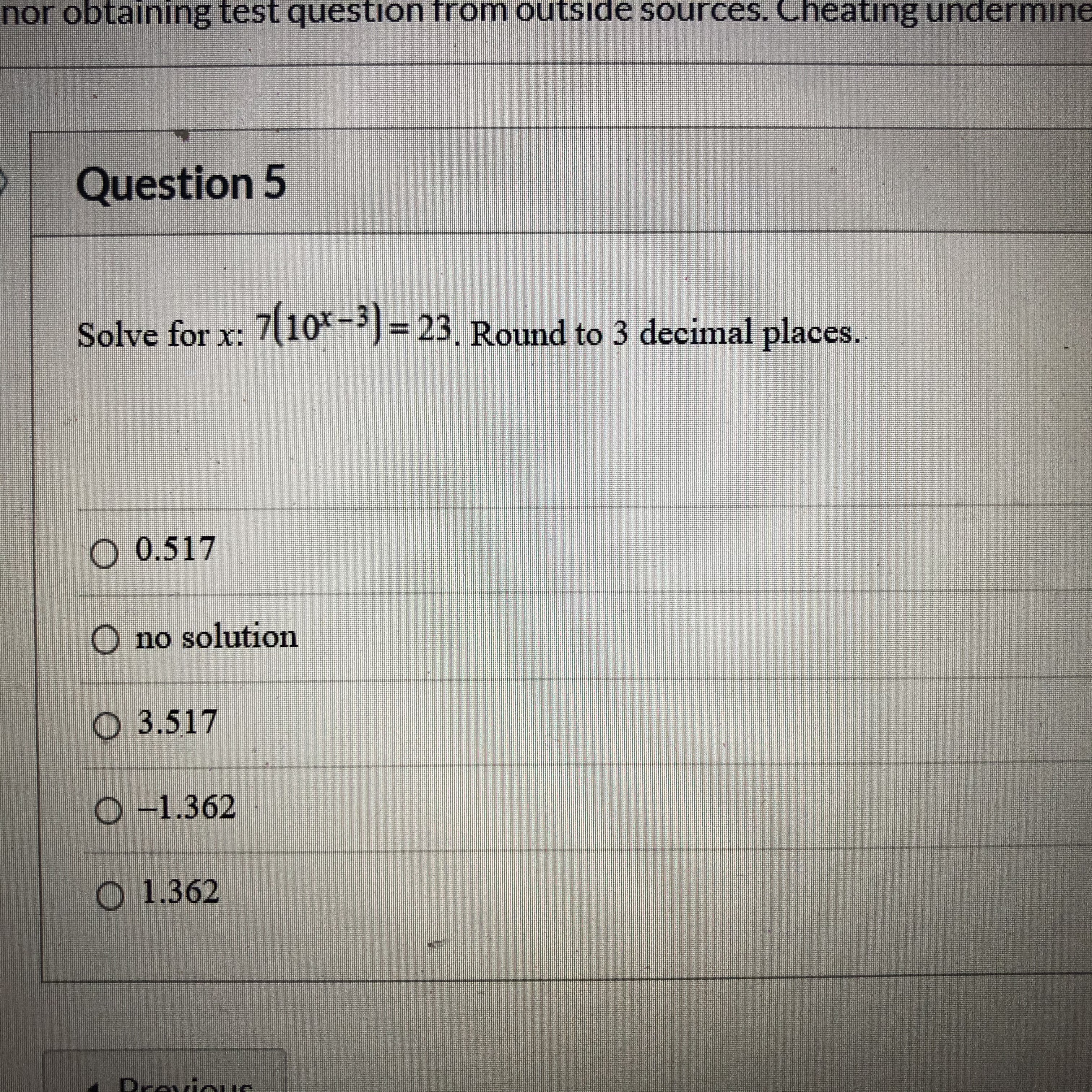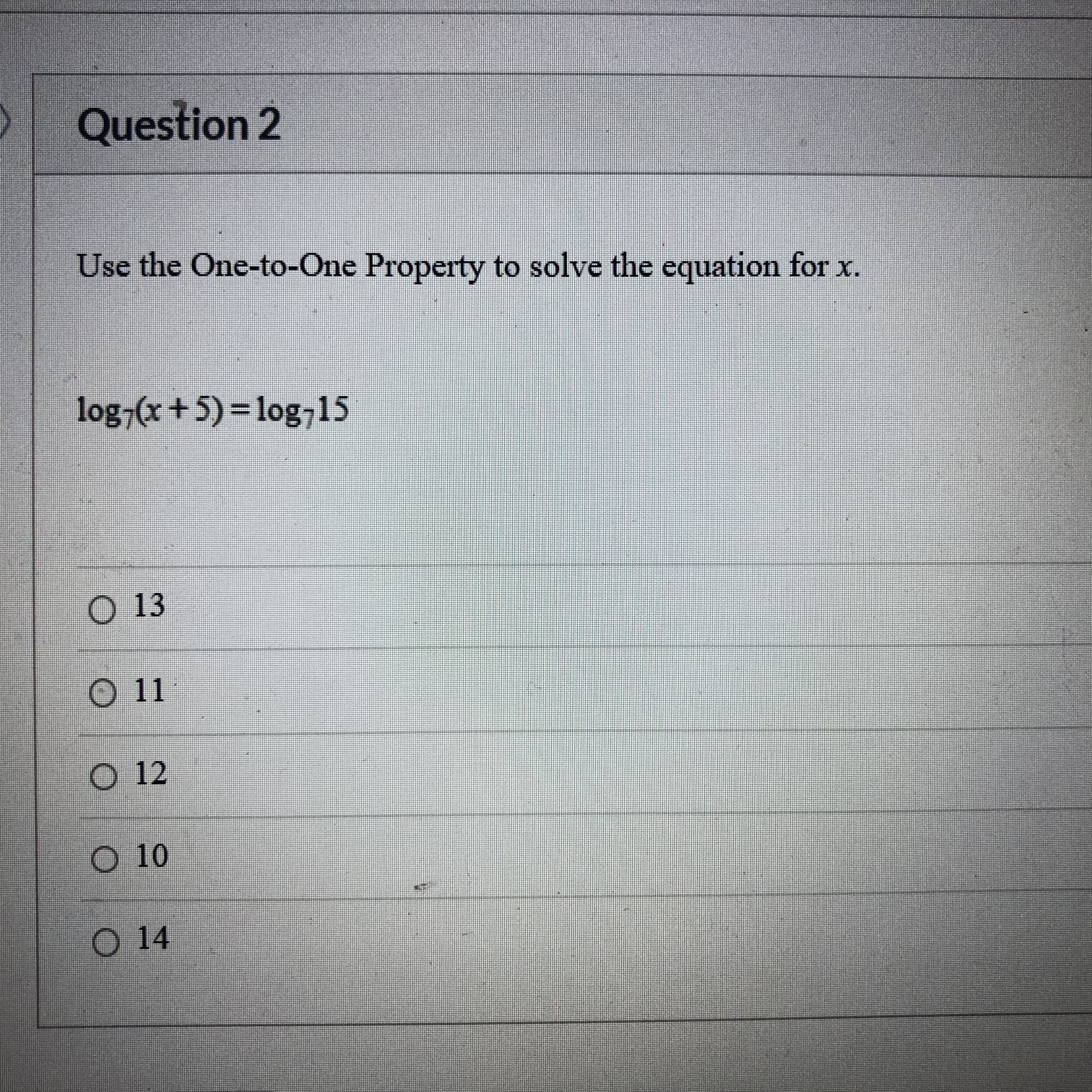 Question 2 Use the One-to-One Property to solve the equation for x...