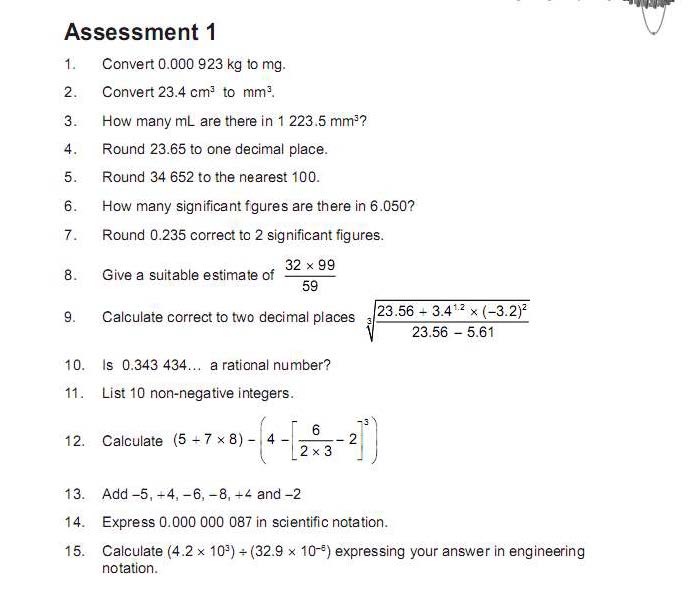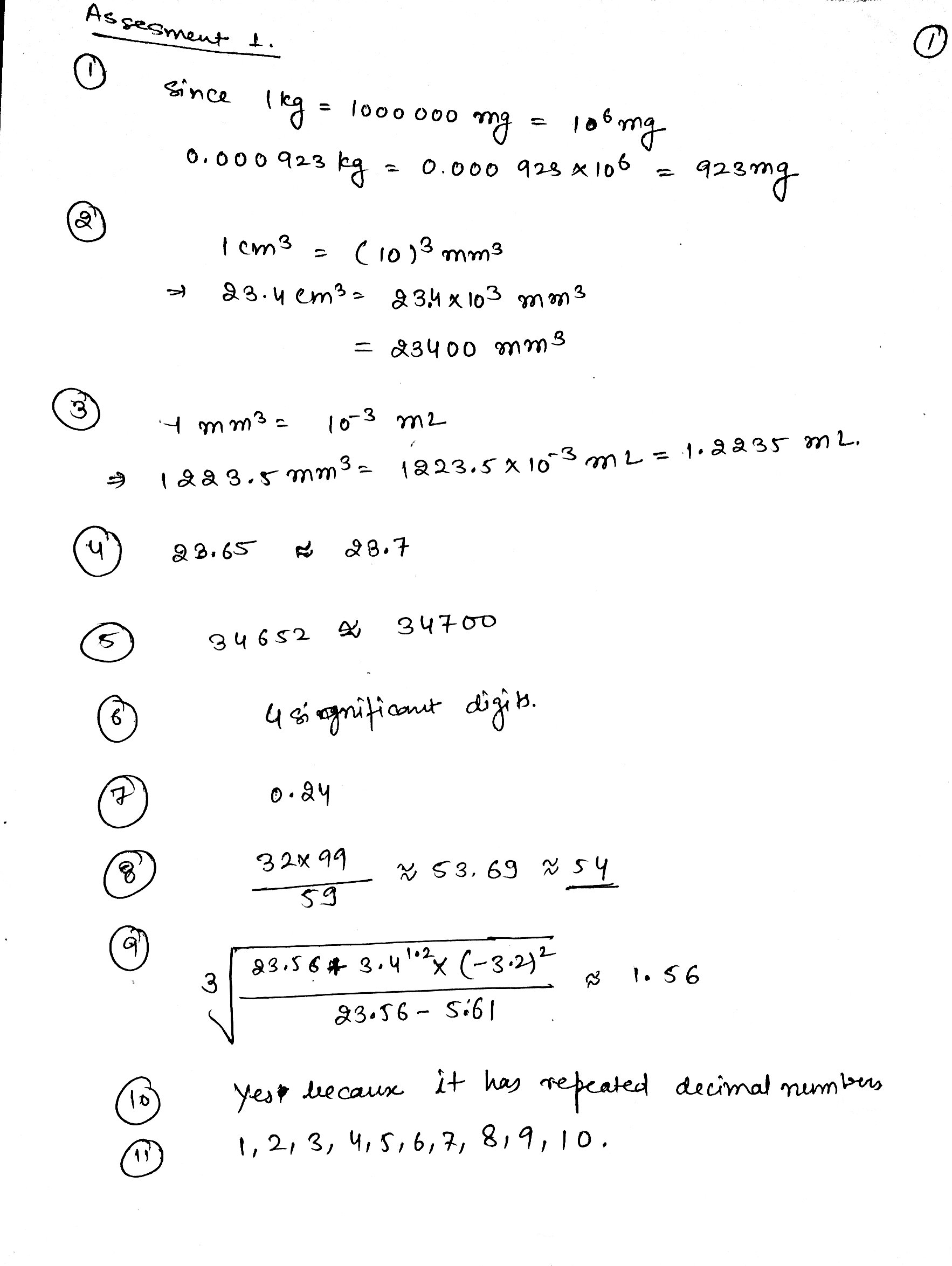 Assessment 1 1. Convert 0.000 923 kg to mg. 2. Convert 23.4 cm' t...