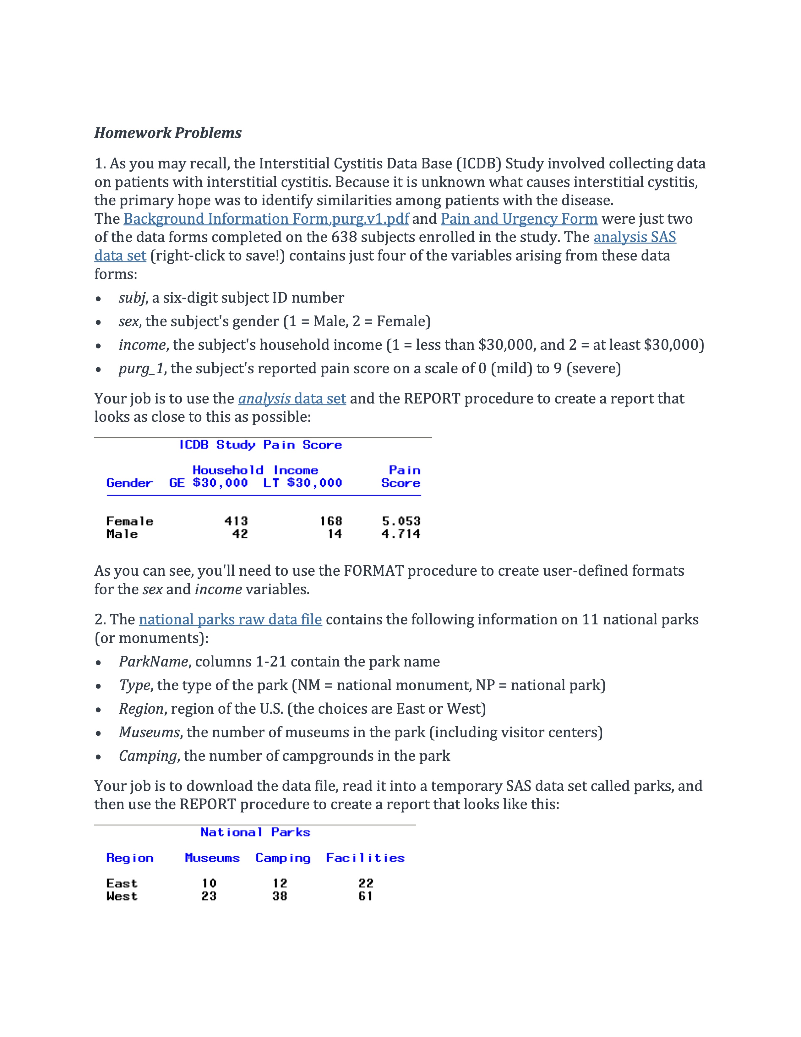 Homework Problems 1. As you may recall, the Interstitial Cystitts ...