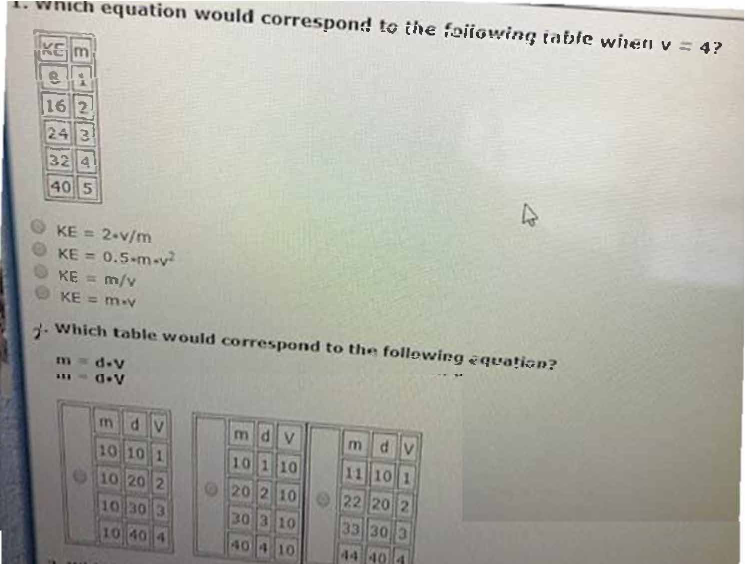 1. Which equation would correspond to the following table when v =...