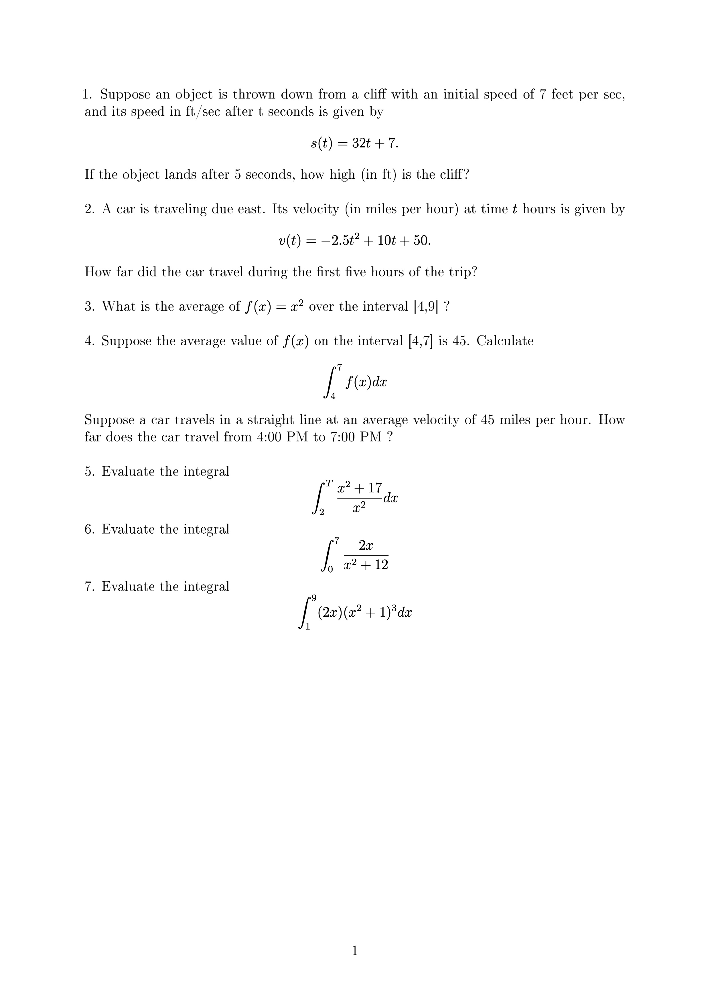 1. Suppose an object is thrown down from a cliff with an initial sp...