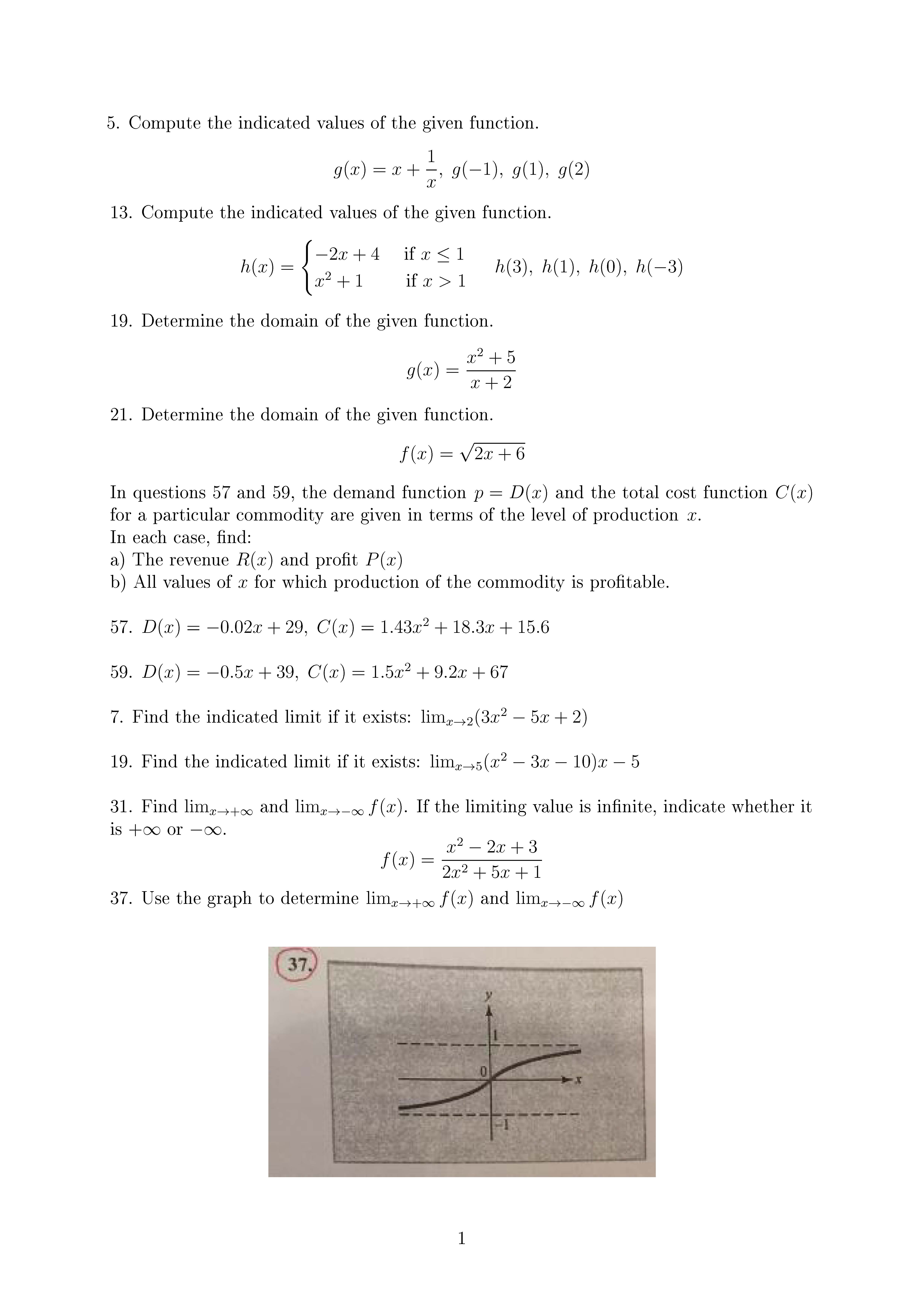 5. Compute the indicated values of the given function. 13. Compute...