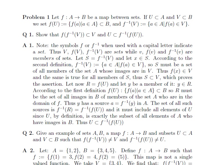 Problem 1. B be a map between sets. set f(U): {f(a)/a A} CB and 1...