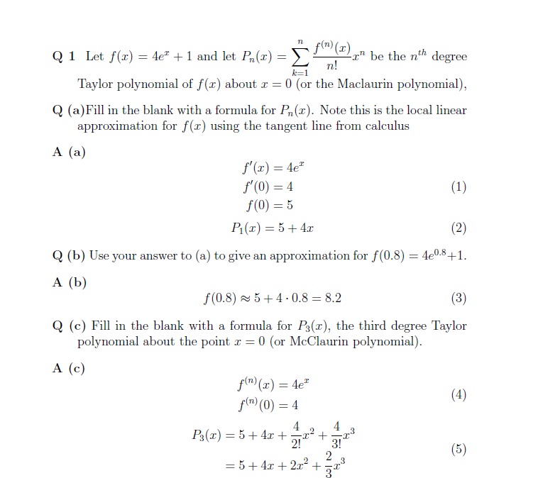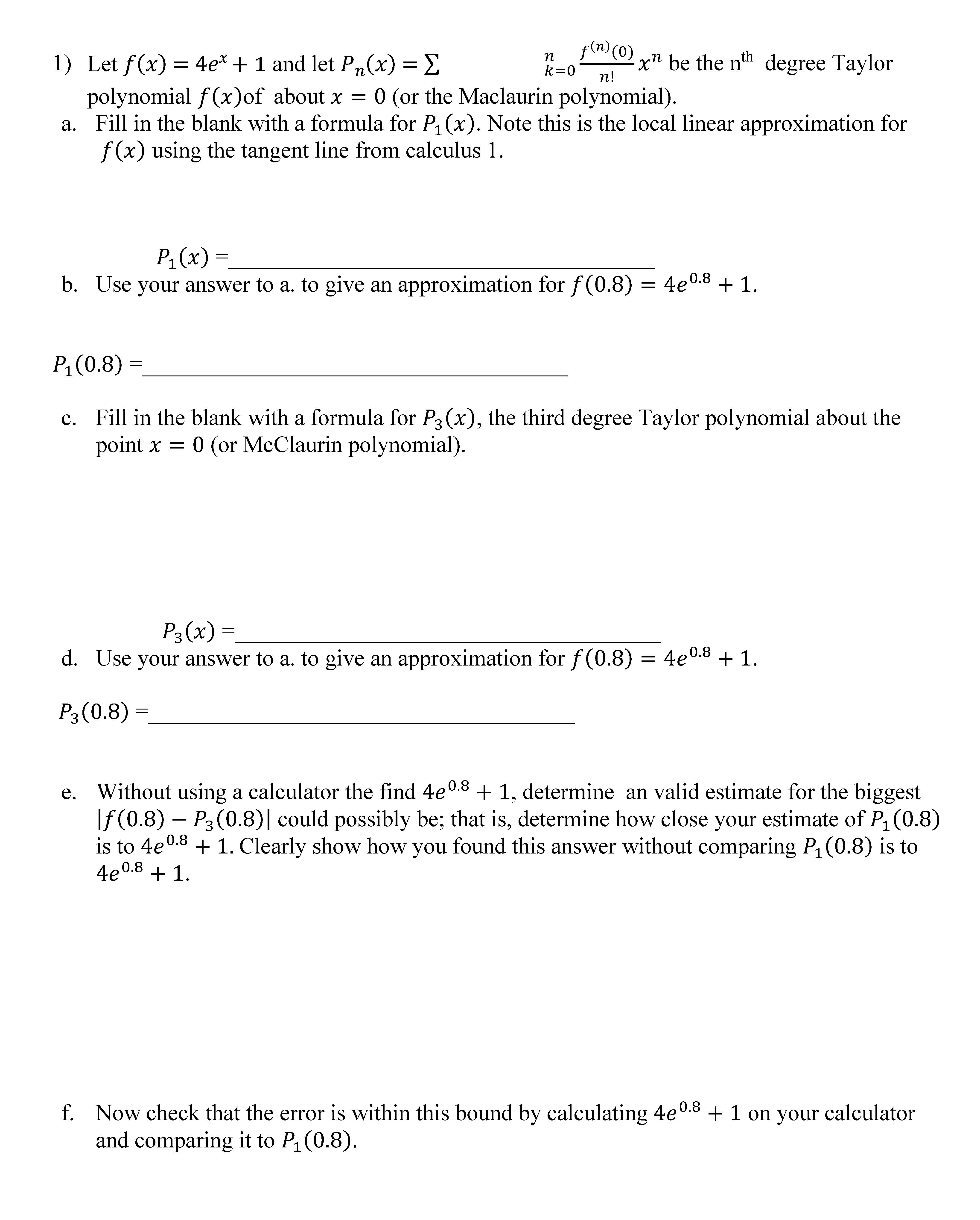 1) Let ð‘“(ð‘¥) = 4ð‘’ð‘¥ + 1 and let ð‘ƒð‘› (ð‘¥) = ∑ ð...