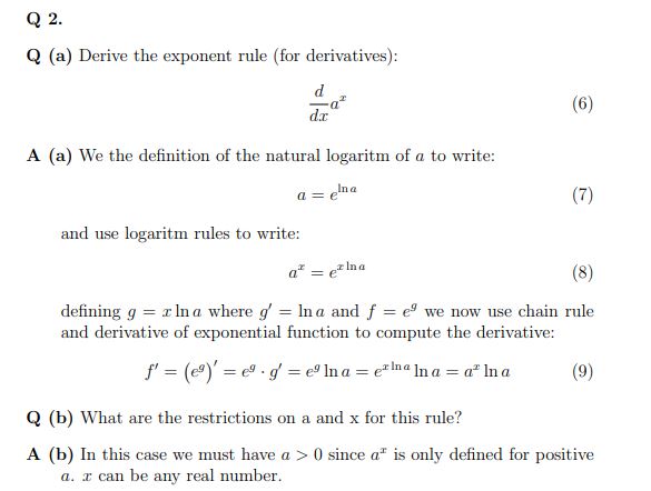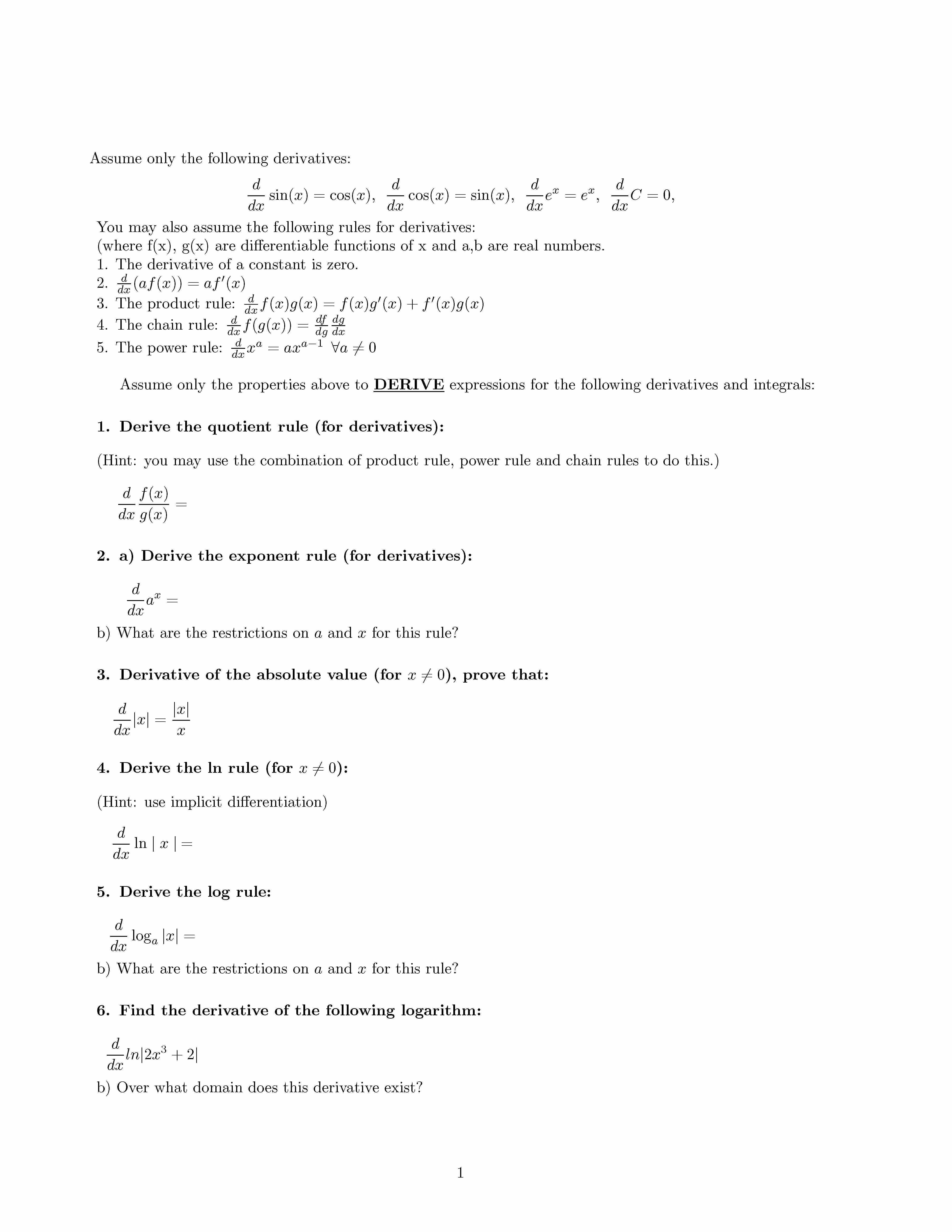 Assume only the following derivatives: dx d sin(x) = cos((2), da =...
