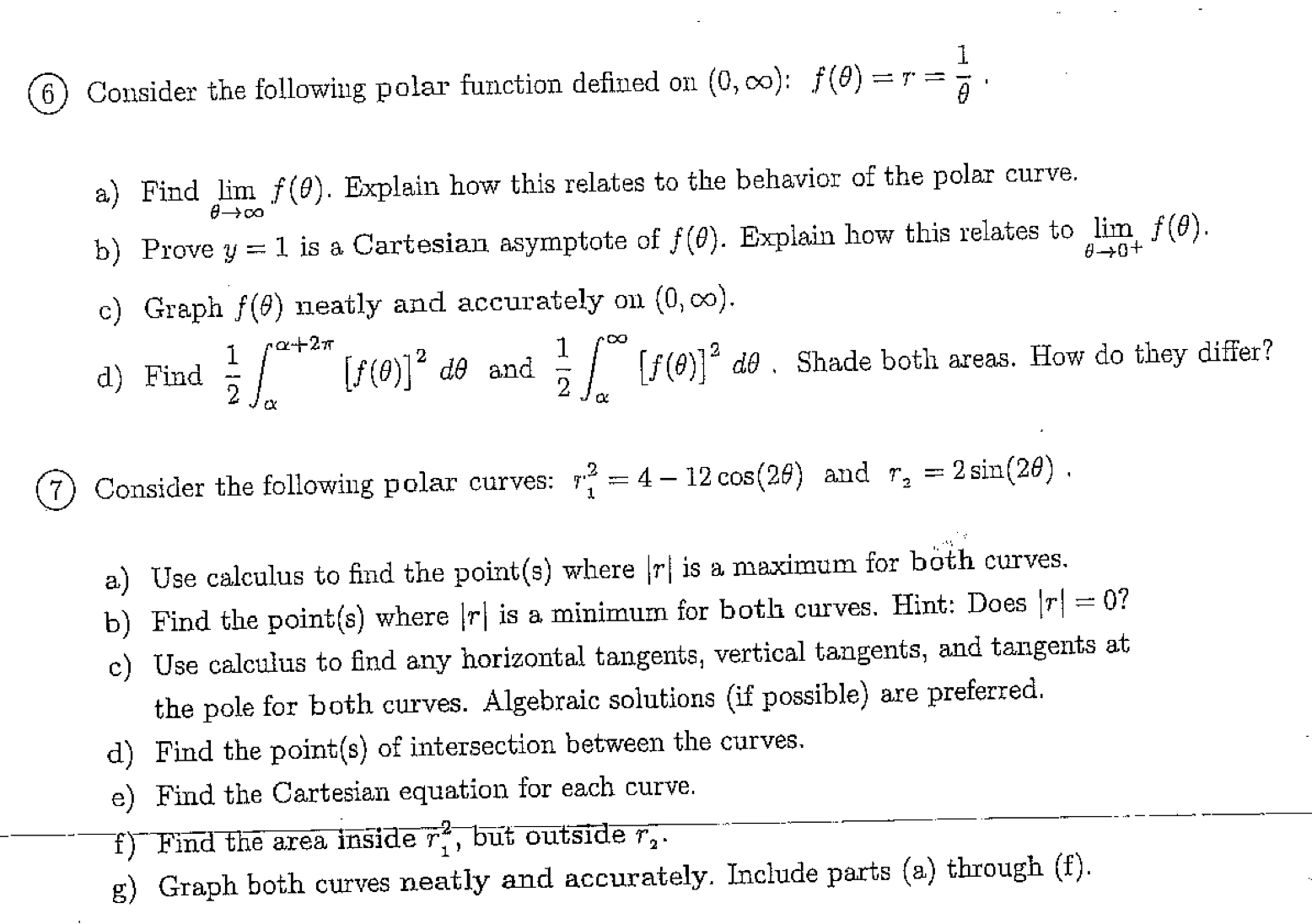 6 Consider the following polar function defined on (0, xo): f(0) j...
