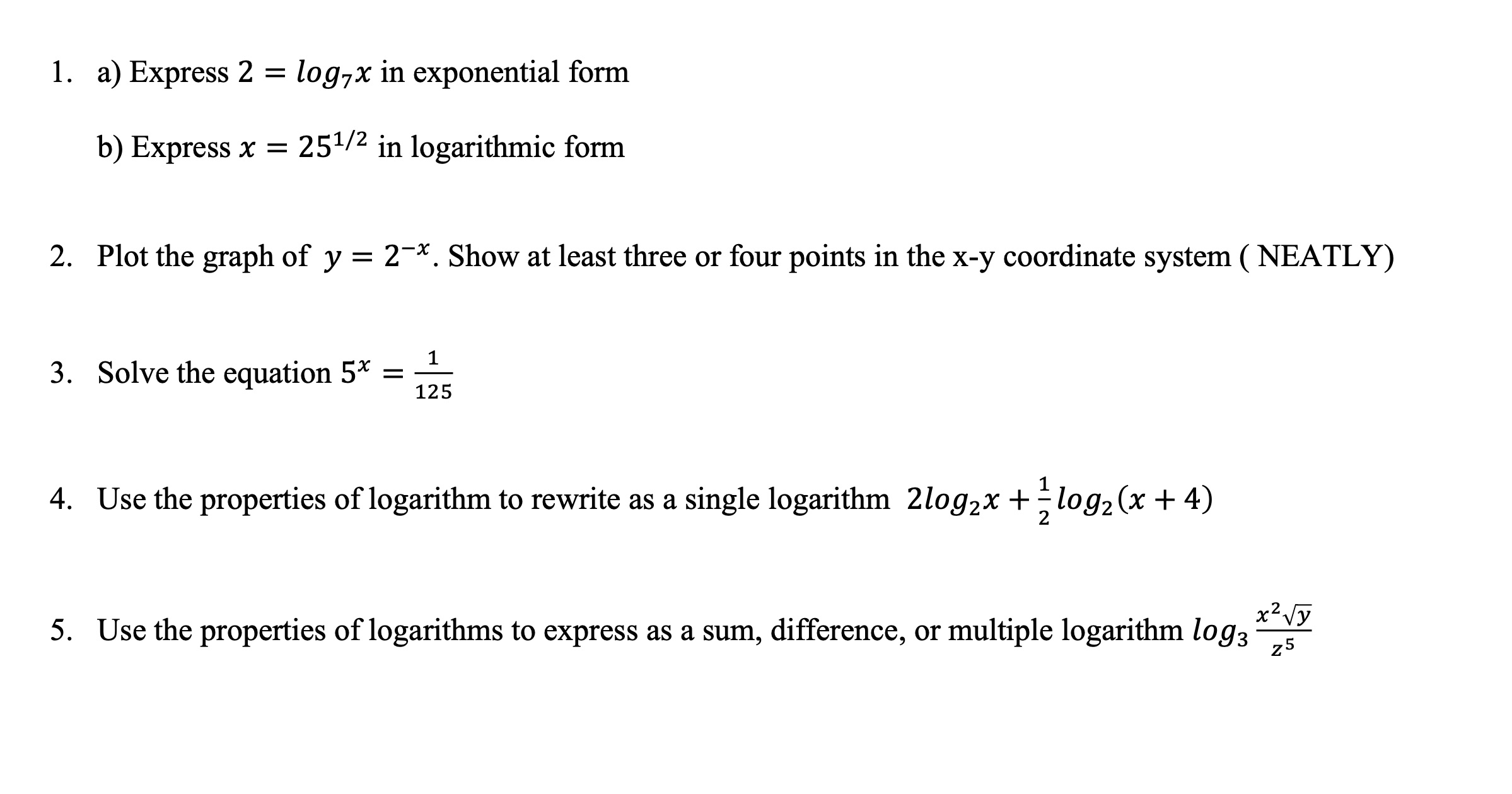 1. a) Express 2 = ���!� in exponential form b) Express �...