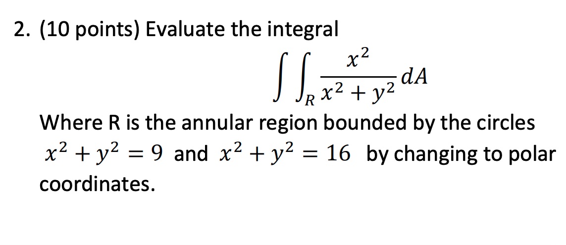 2. (10 points) Evaluate the integral 2 R x² X 2 dA + y Where...