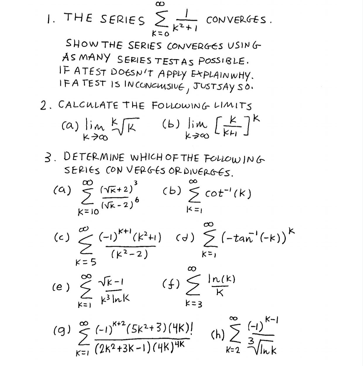 1. THE SERIES CONVERGES. K2+1 K=O SHOW THE SERIES CONVERGES USI...