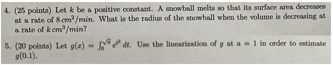 4. (25 points) Let k be a positive constant. A snowball melts so th...