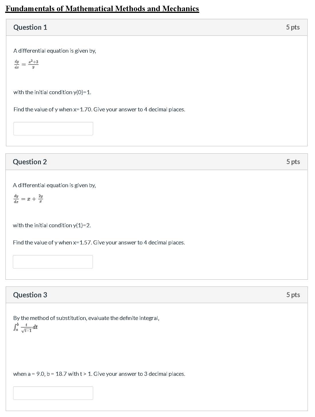 Fundamentals of Mathematical Methods and Mechanics Question 1 5 p...