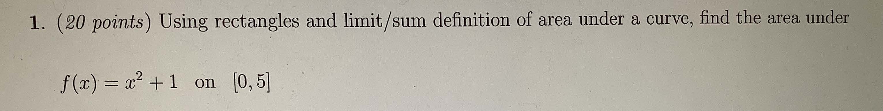 1. (20 points) Using rectangles and limit/sum definition of area un...