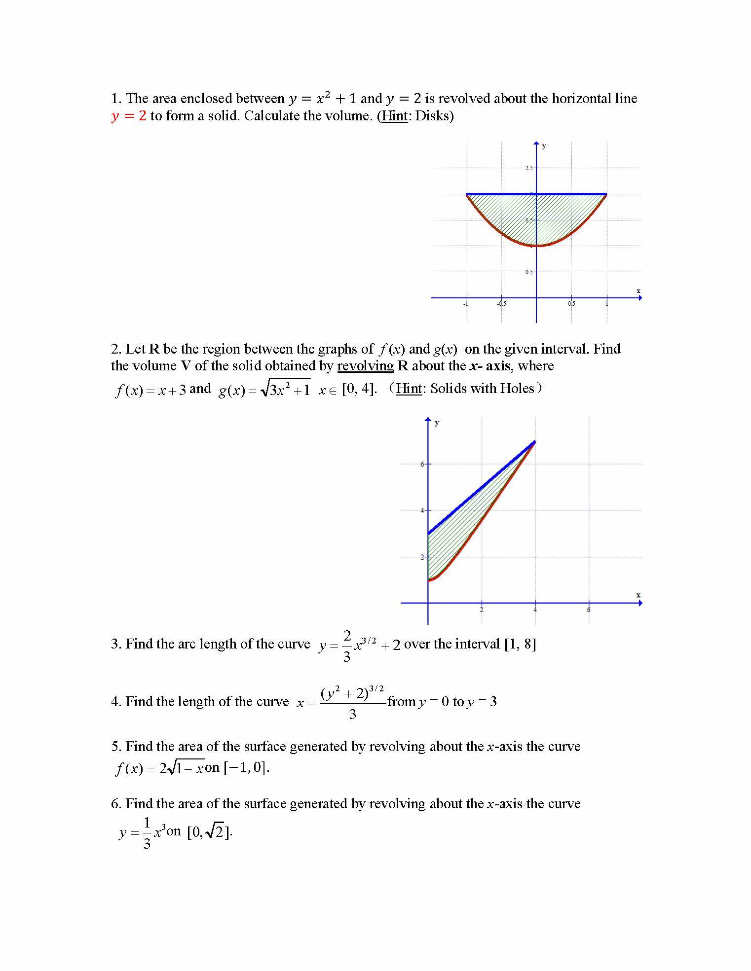 1. The area enclosed between y =x2 + 1 andy =2 is revolved about th...