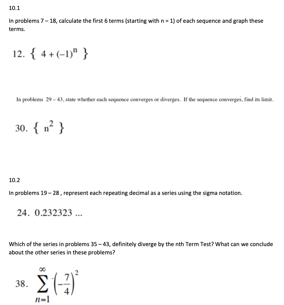 10.1 Inproblems 7- 18, calculate the first 6terms (starting withn=...
