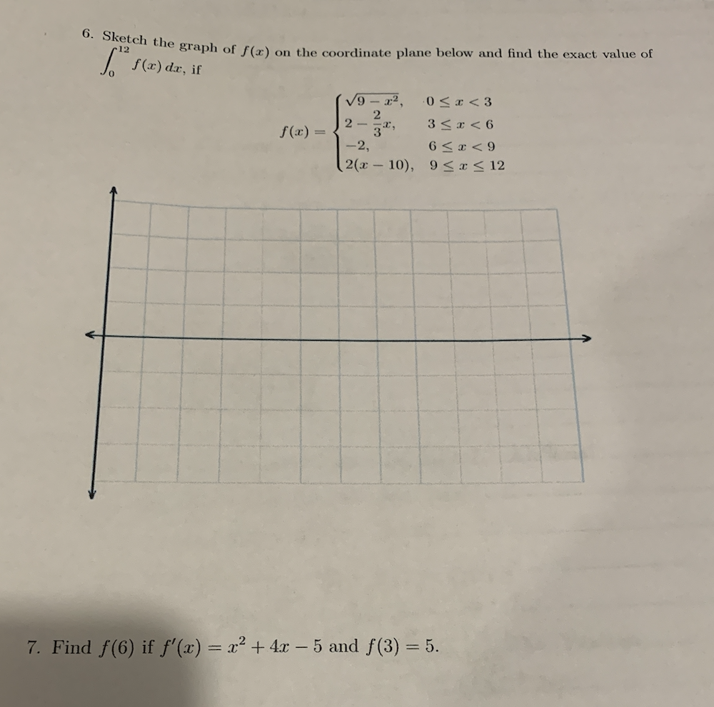6. Sketch 12 the graph of f(x) on the coordinate plane below and fi...