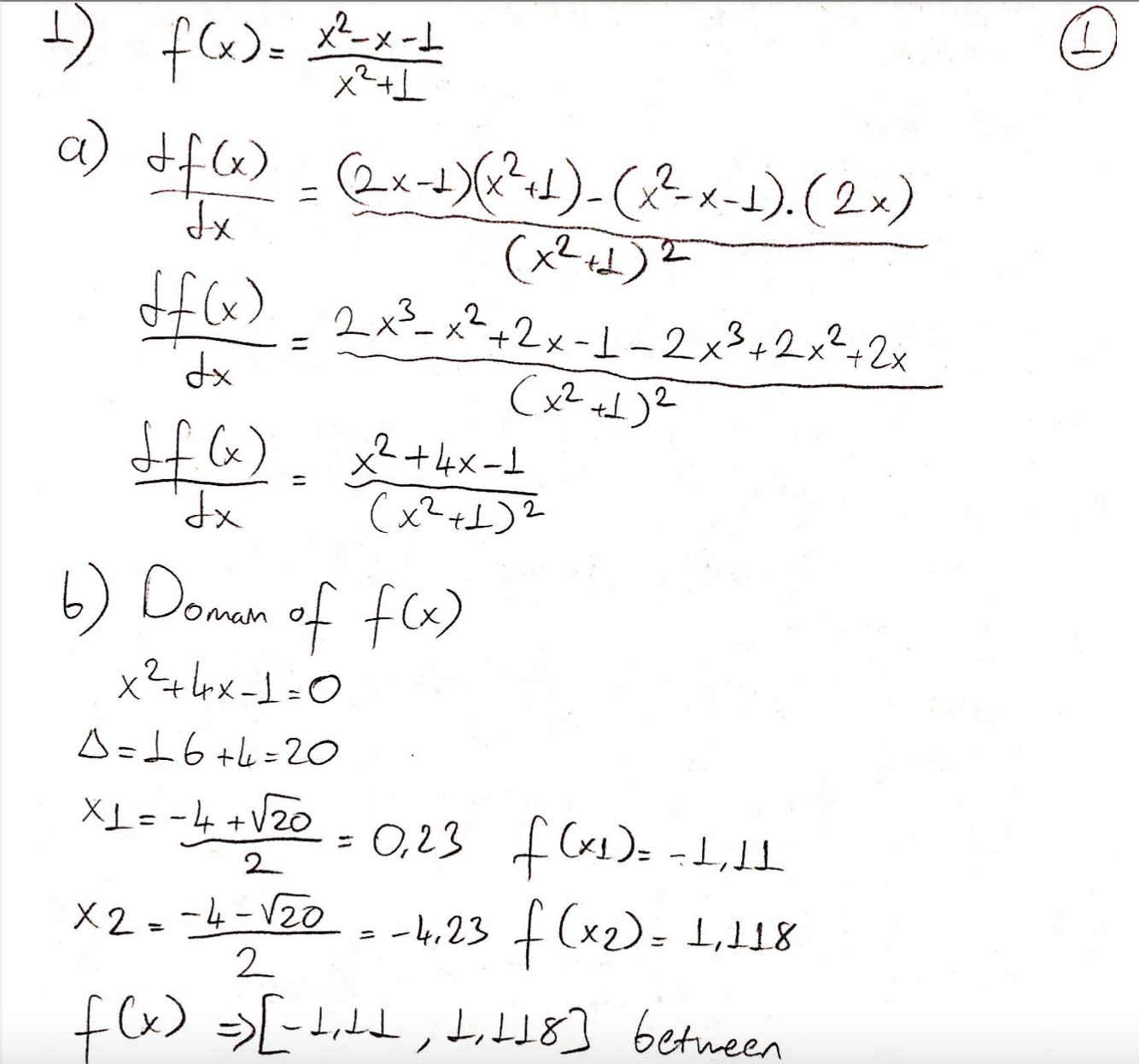 (1) For the function f(x) = 1 x²+1 (a) Find the derivative of f(...