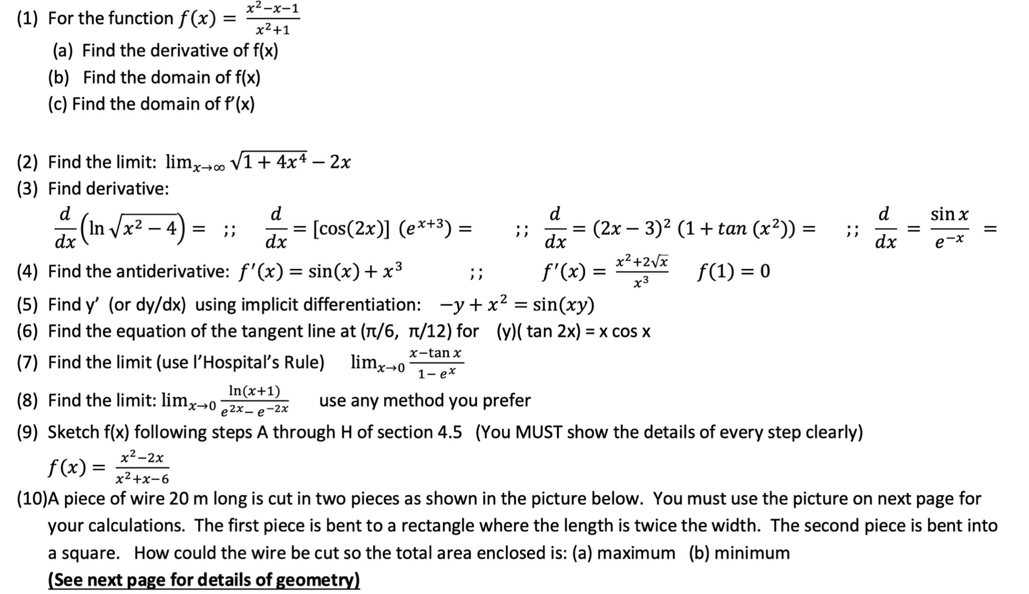 (1) For the function f(x) = 1 x²+1 (a) Find the derivative of ...