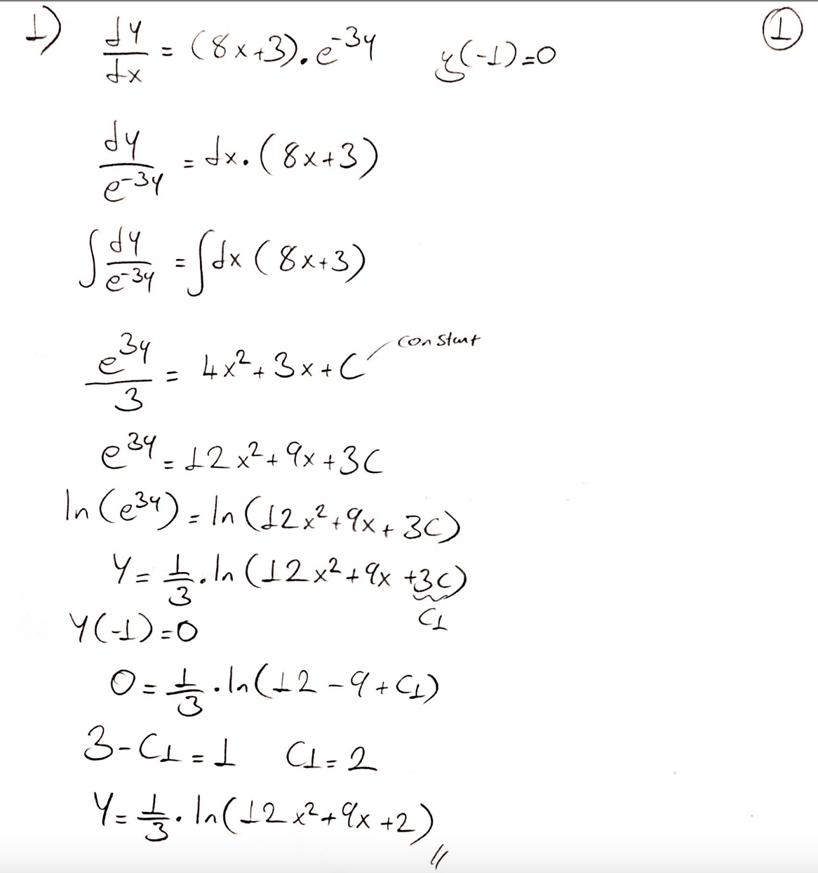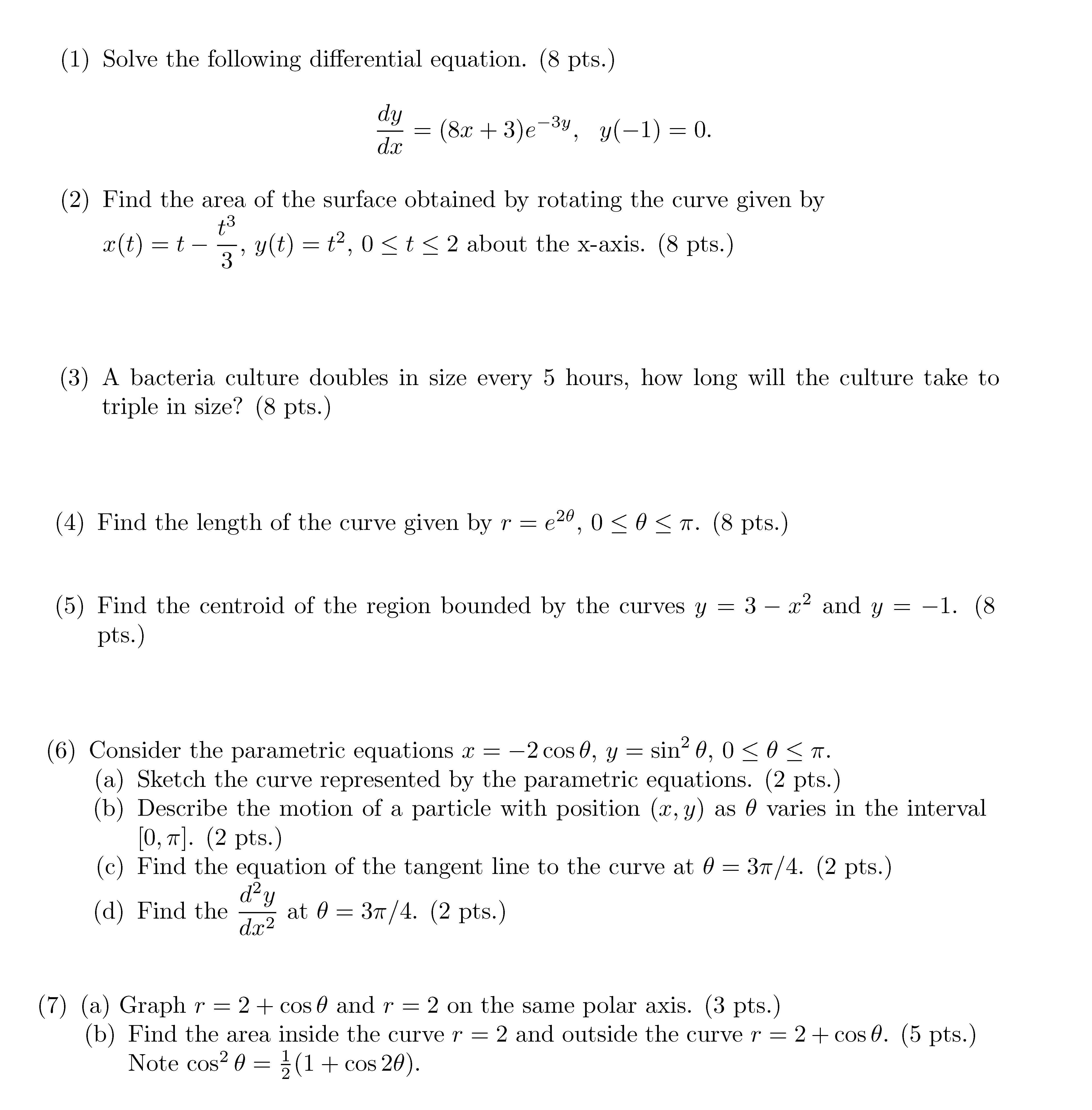(1) Solve the following differential equation. (8 pts.) dy = (8r++...