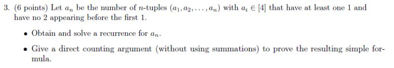 3. (6 points) Let an be the number of n-tuples (a1,02, an) with a, ...