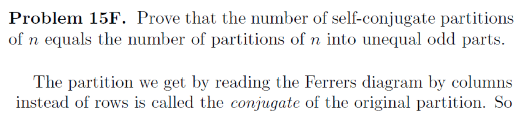 Problem 15F. Prove that the number of self-conjugate partitions of...