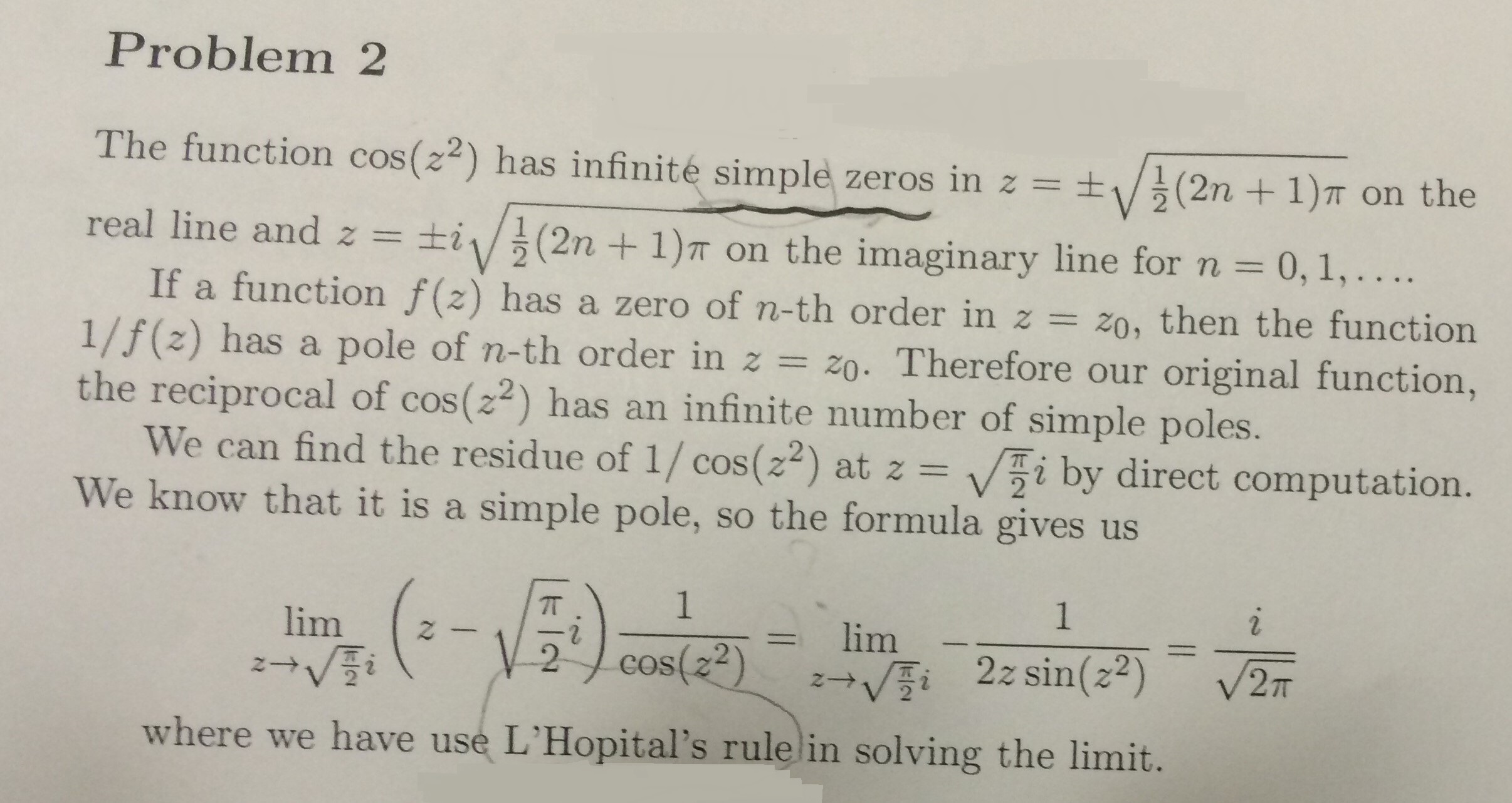 Problem 2 The function COS ((22) has infinité simple zeros in Z =...
