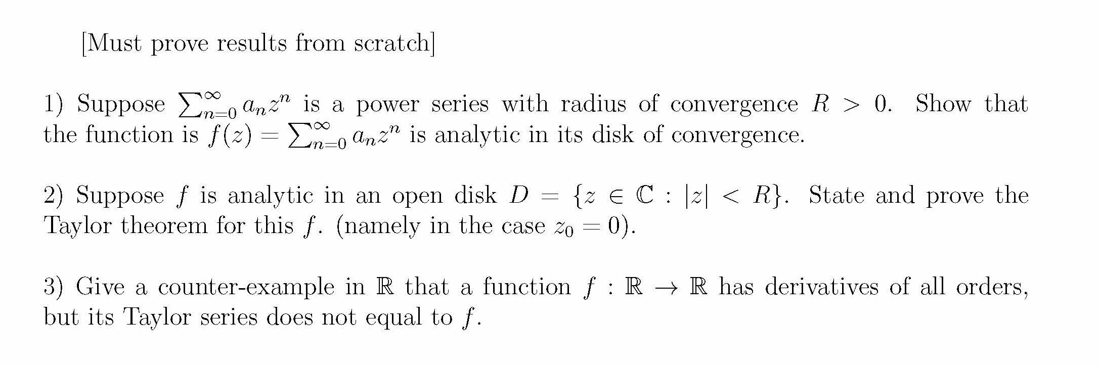 [Must prove results from scratch] 1) Suppose P∞ n=0 anz n is...