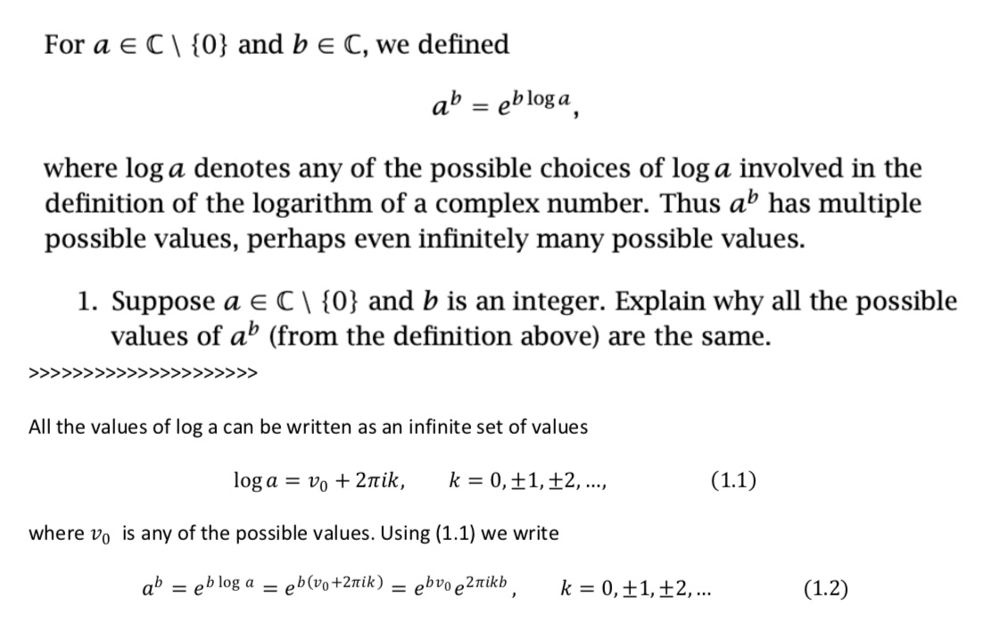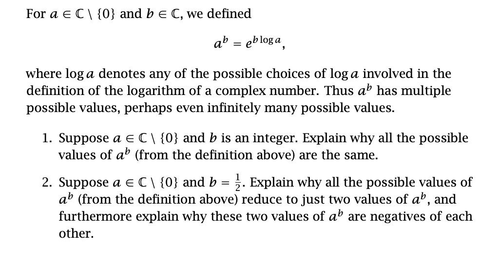 For a € C \ {0} and b € C, we defined ab=ebloga, = , ...