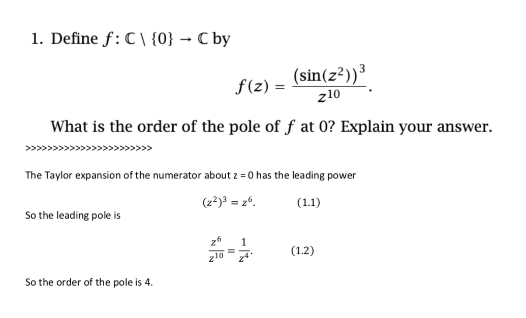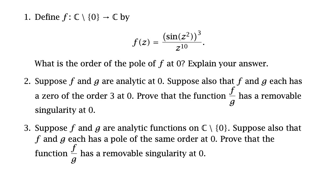 1. Define f: C \ {0} C by f(2)_ (sin(221) 3 . z10 What is the ...