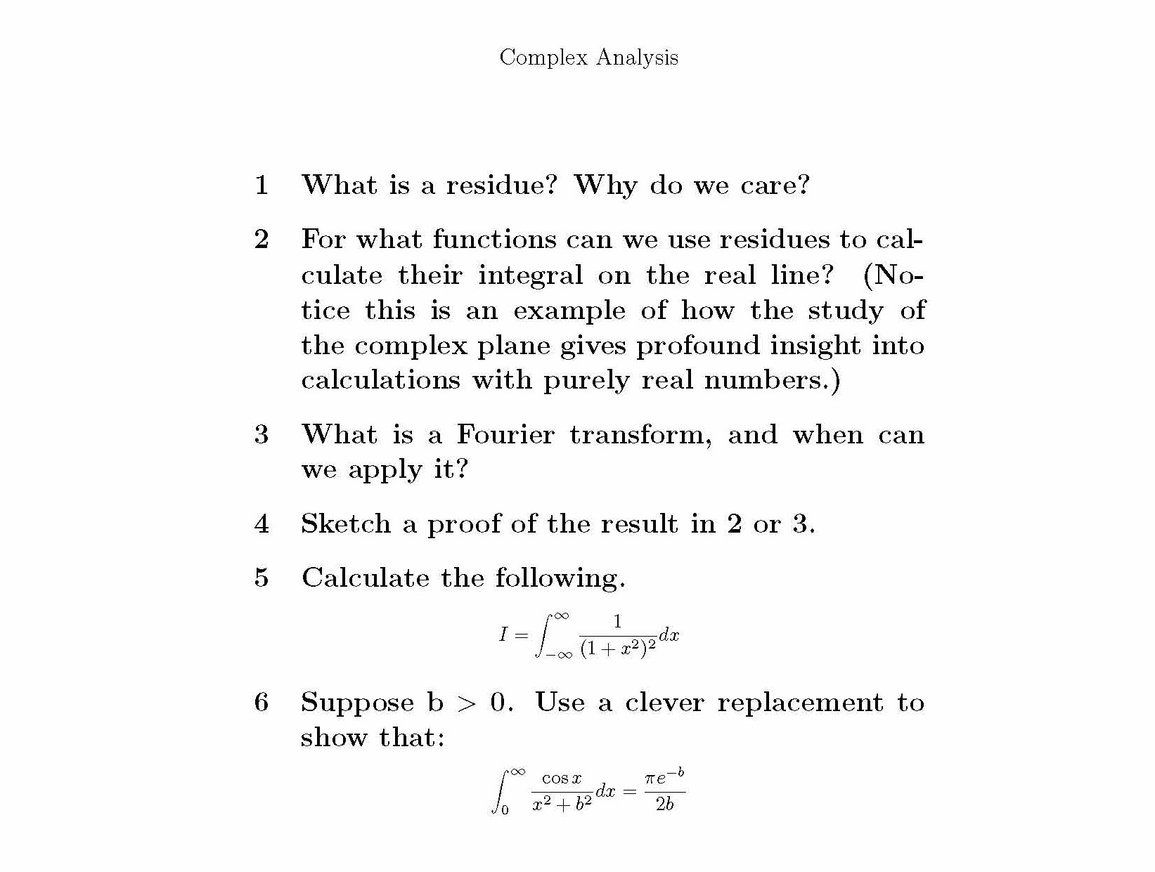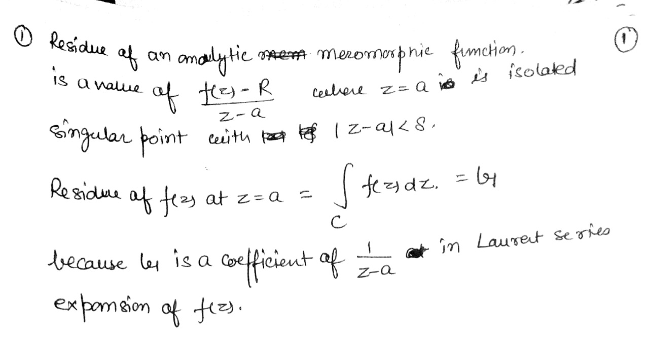 Complex Analysis 1 What is a residue? Why do we care? 2 For what ...