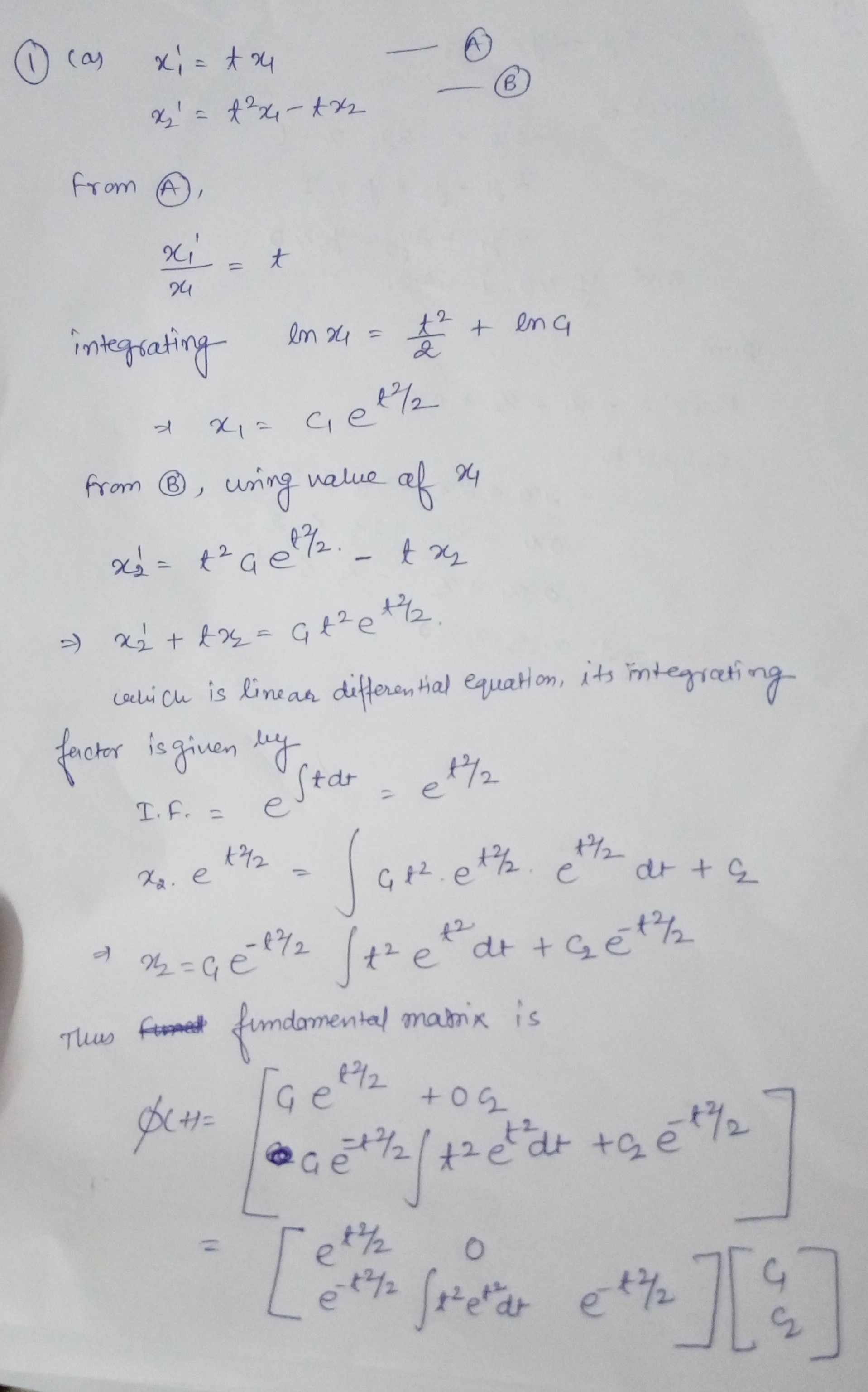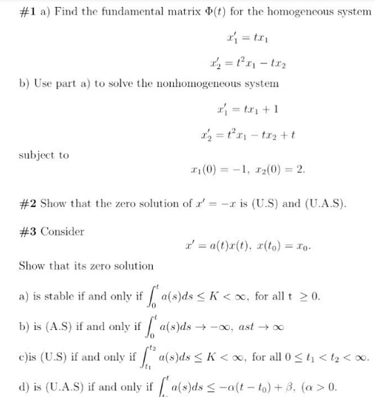 1 a) Find the fundamental matrix D(t) for the homogeneous system b...