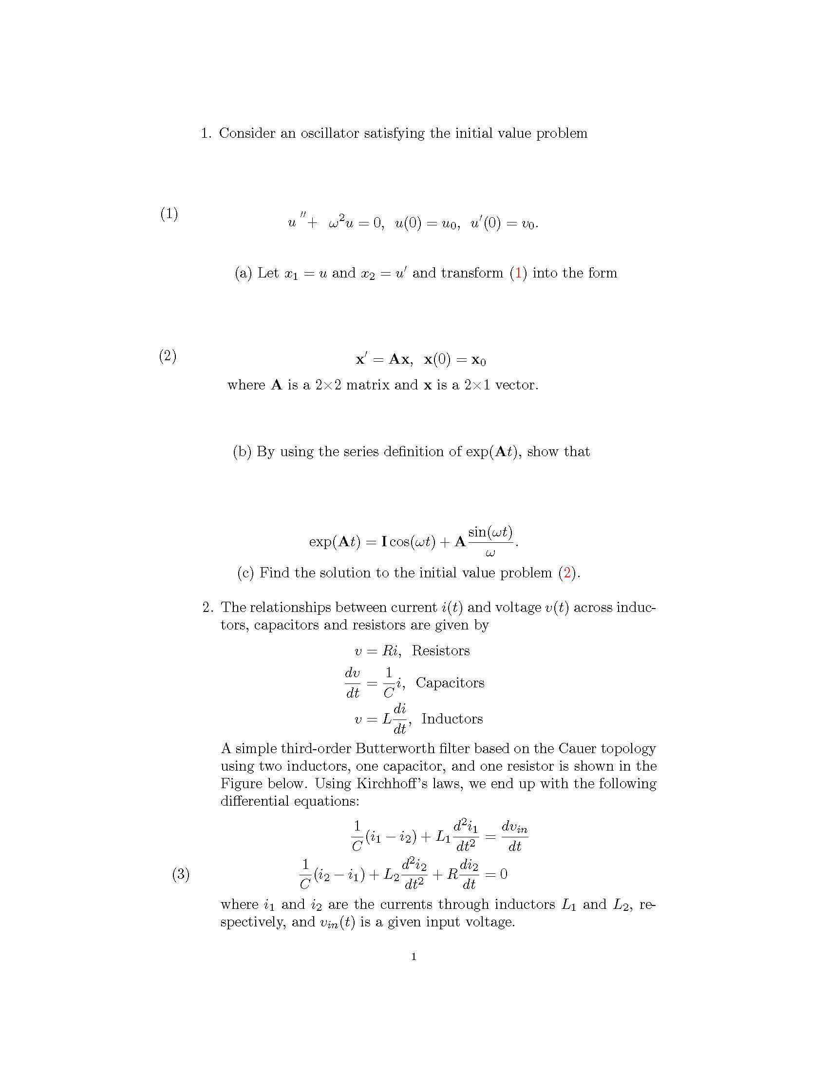1. Consider an oscillator satisfying the initial value problem (1)...