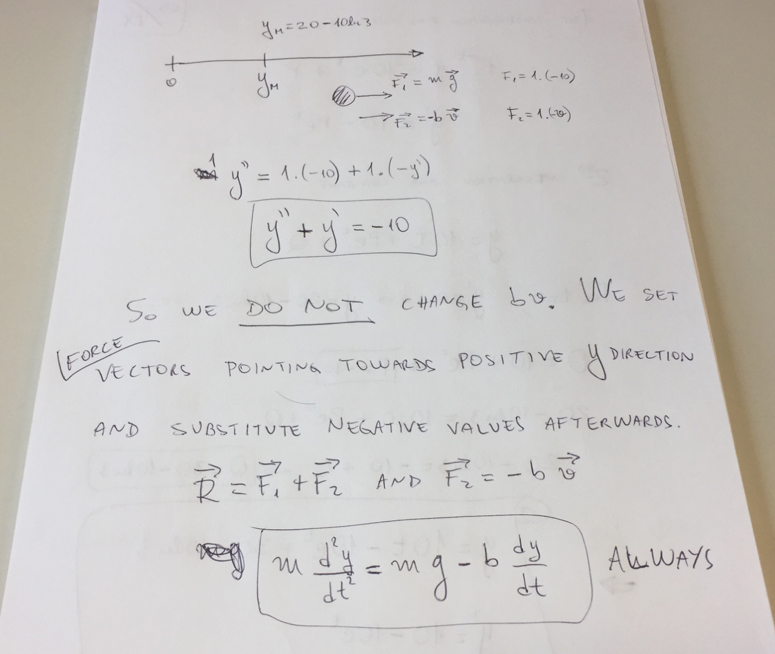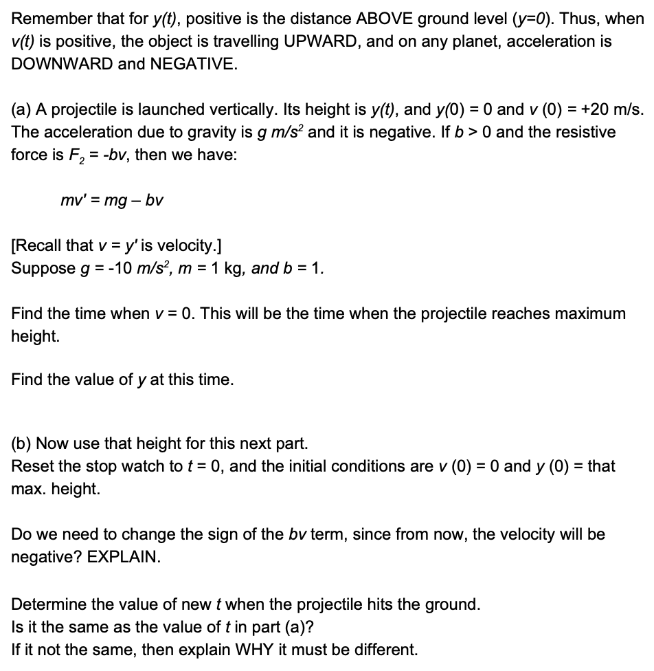 Remember that for y(t), positive is the distance ABOVE ground level...