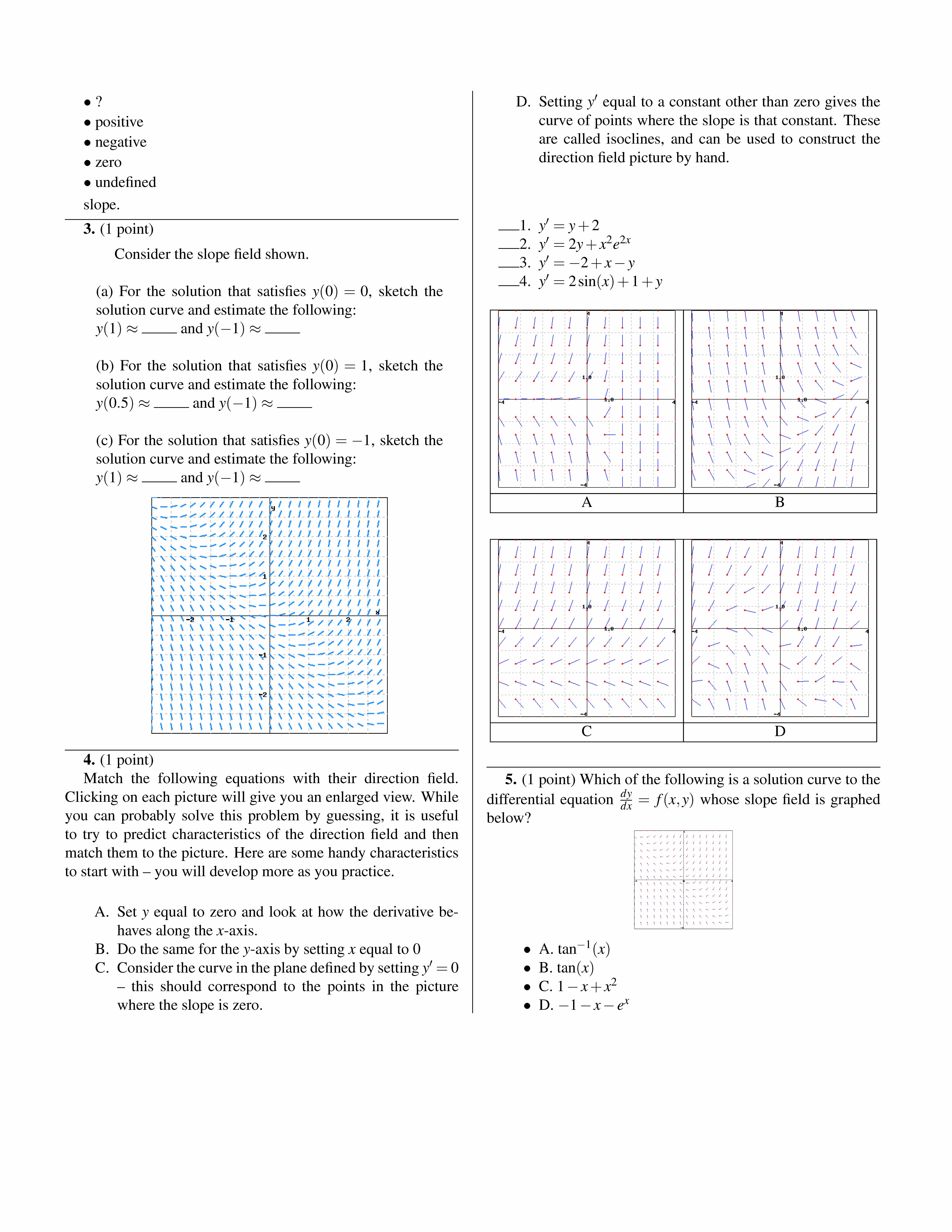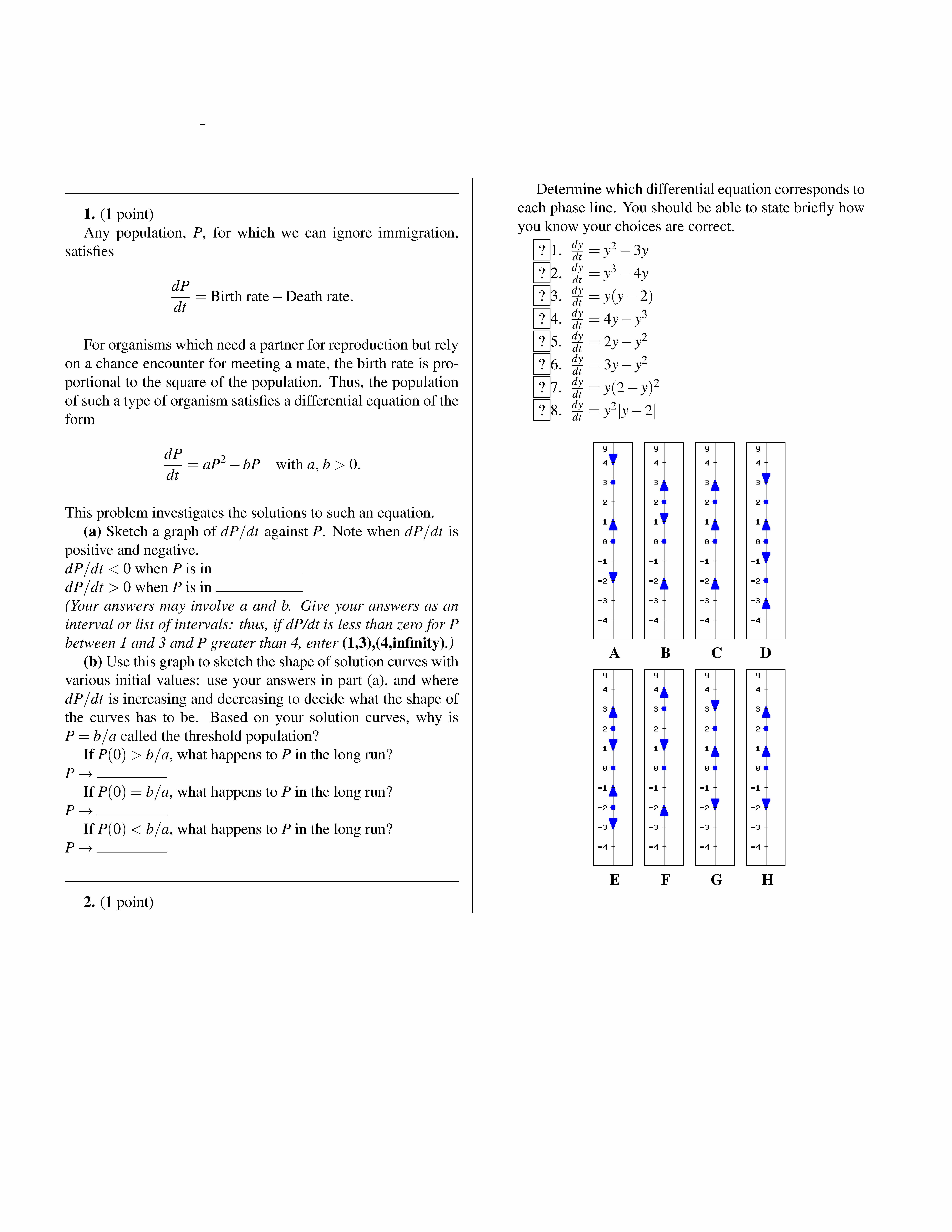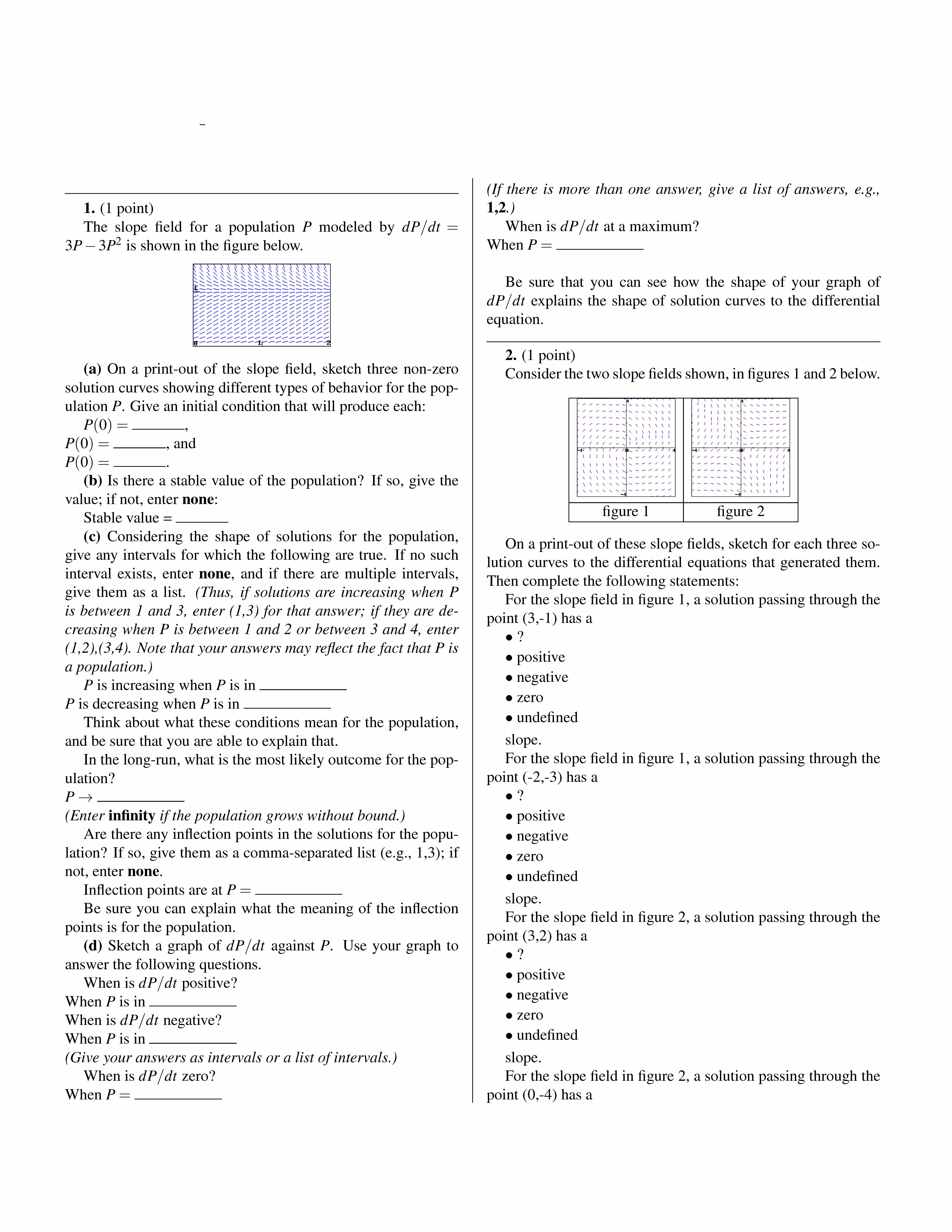 1. (1 point) The slope field for a population P modeled by dP=dt =...