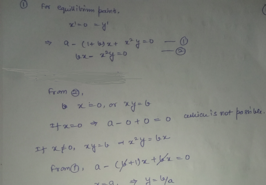 Portion A 1. Consider the system of equations x' = a - (1+b) x + ...