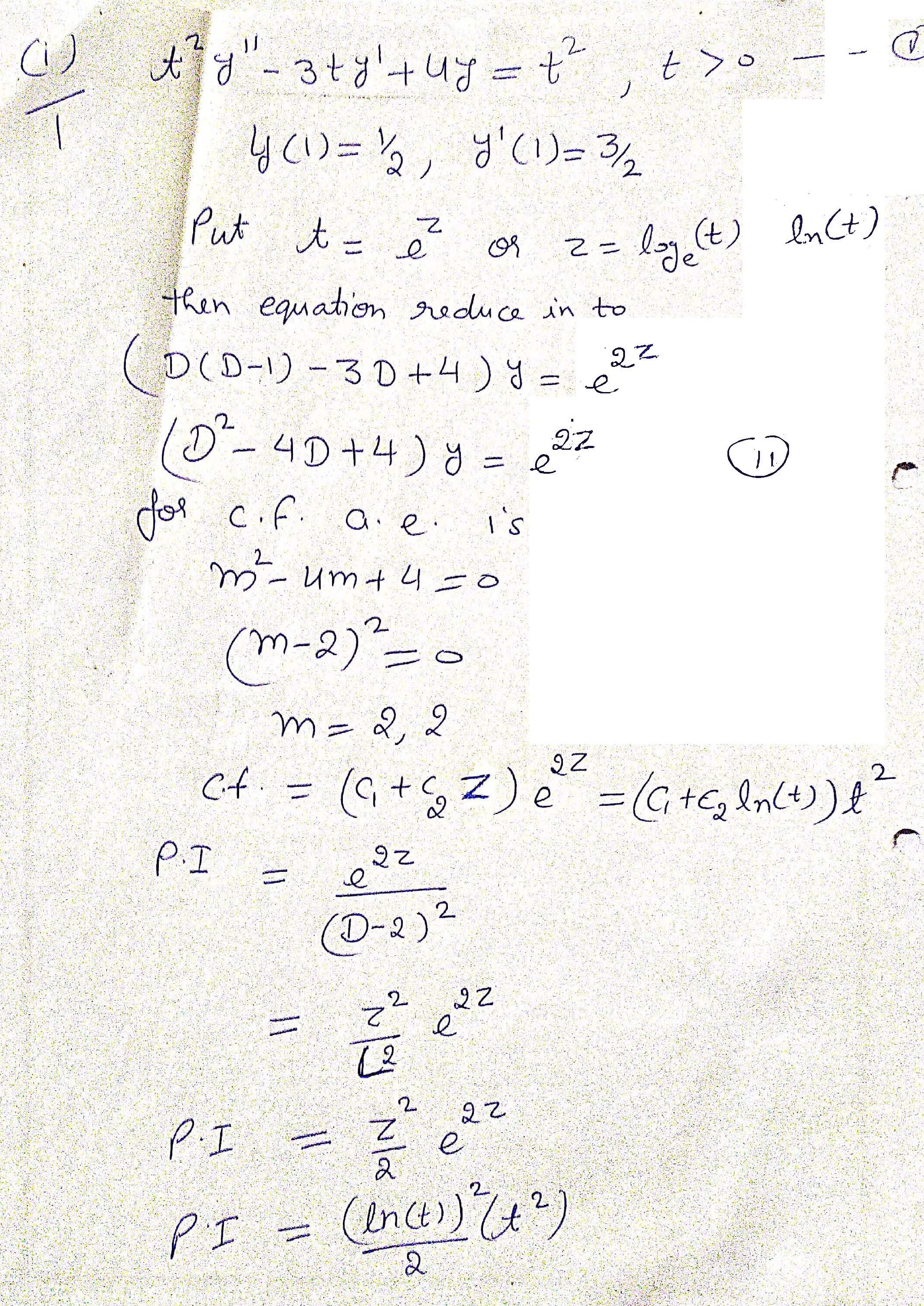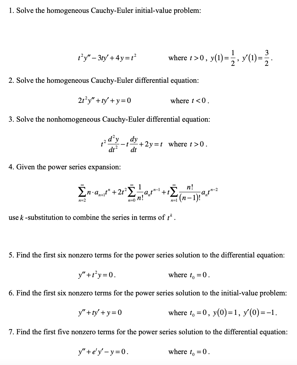 1. Solve the homogeneous Cauchy-Euler initial-value problem: where...