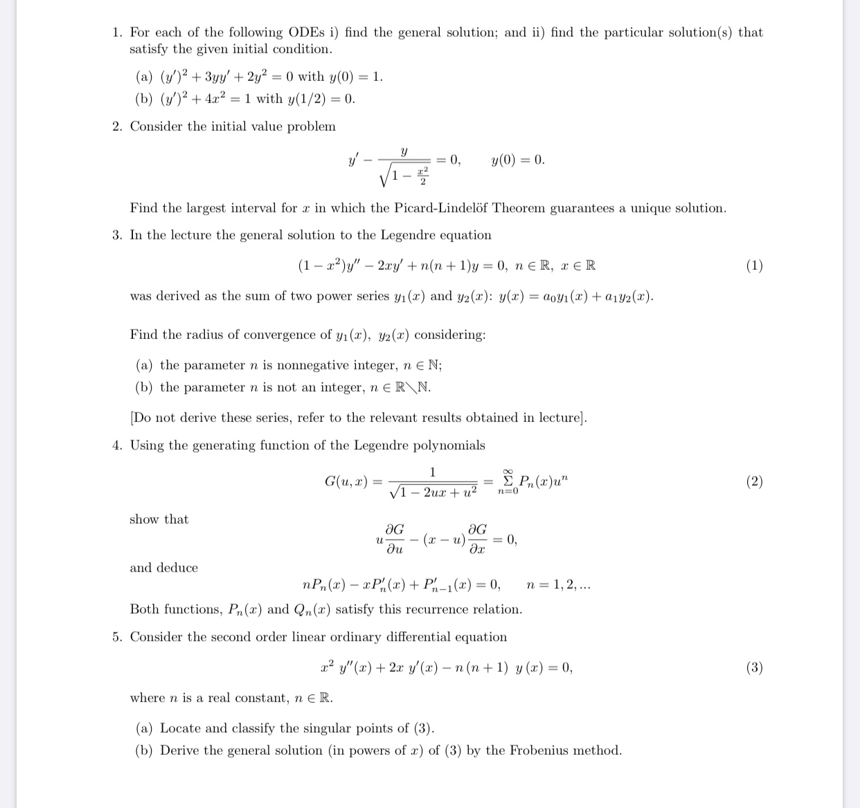 1. For each of the following ODEs i) find the general solution; and...
