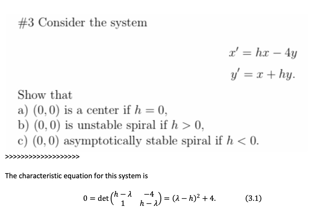 #3 Consider the system x' = hx - 4y y' = x + hy Show that a) (...