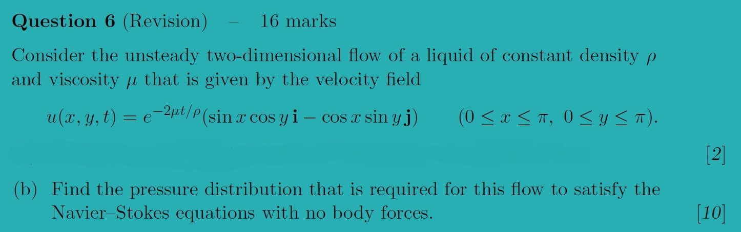 Question 6 (Revision) 16 marks Consider the unsteady two-dimensio...