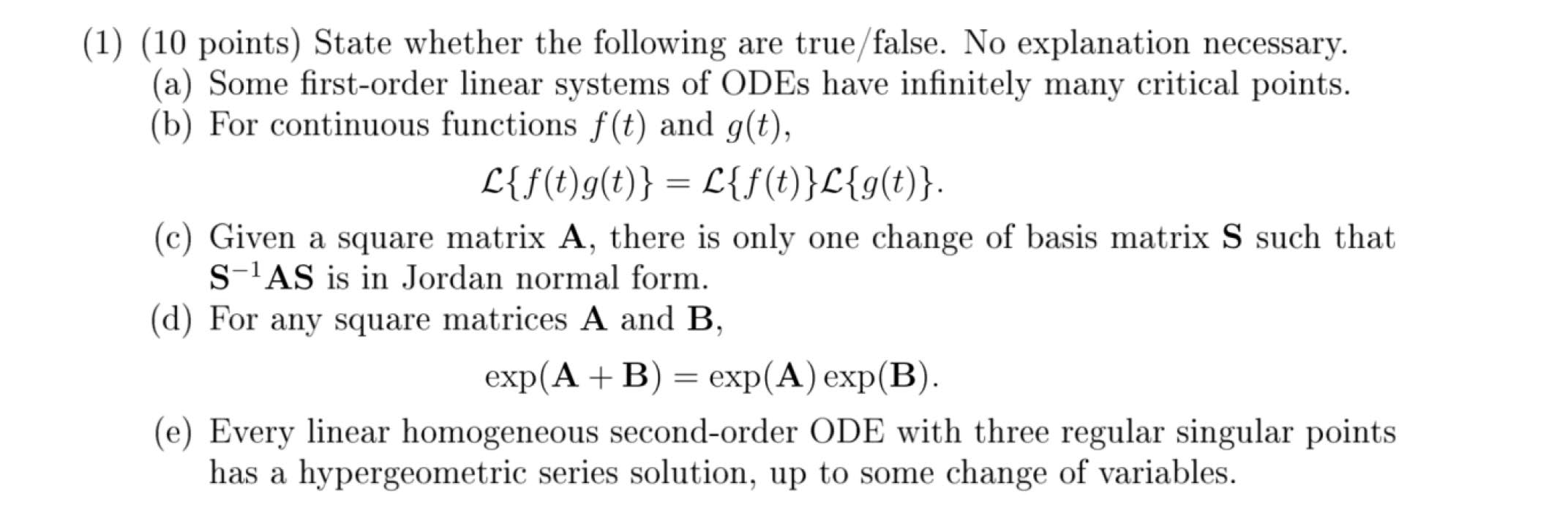 (1) (10 points) State whether the following are true/false. No expl...