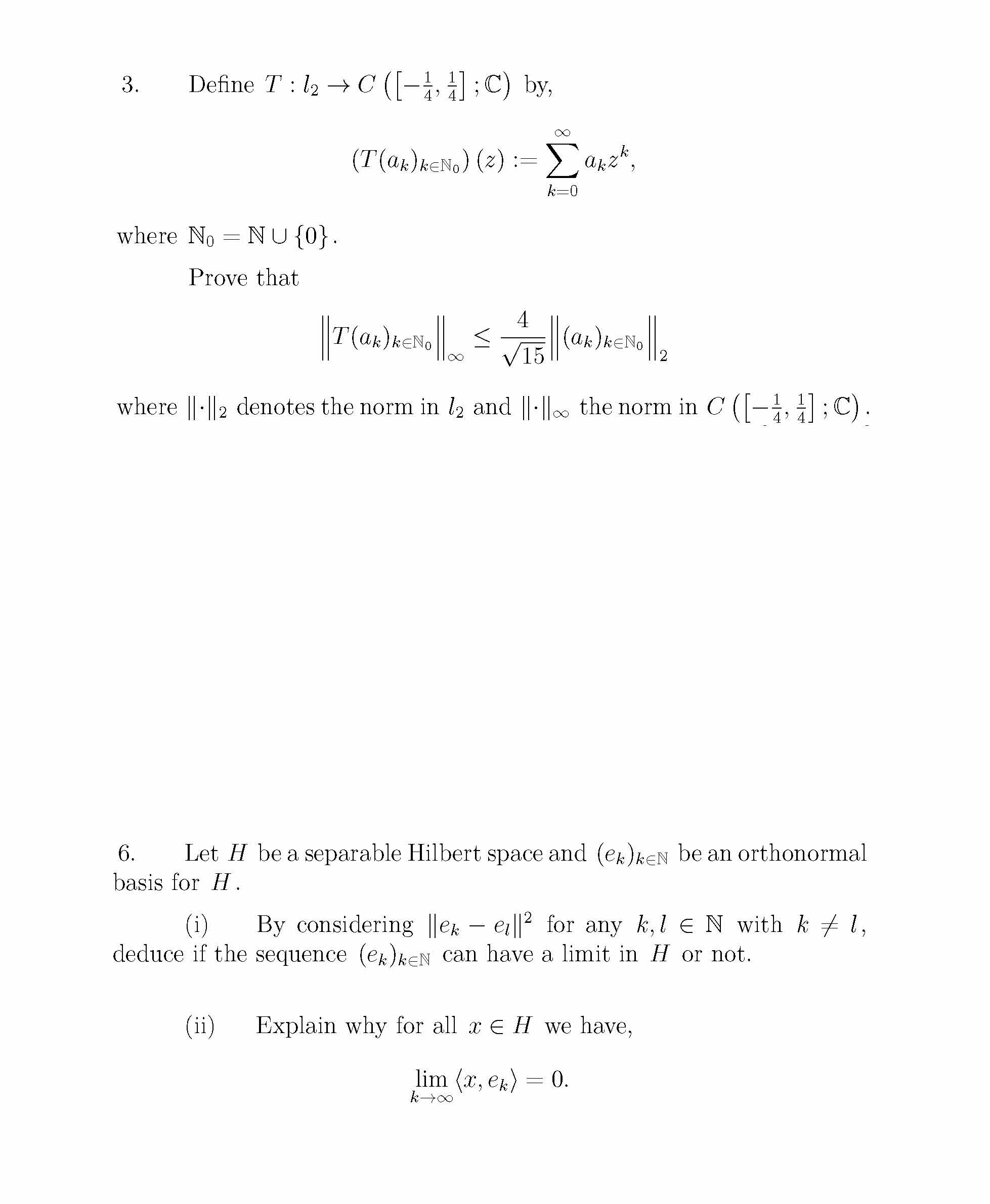 3. Define T:l2 by, == where No = Nu(0). Prove that where |-|2 ...