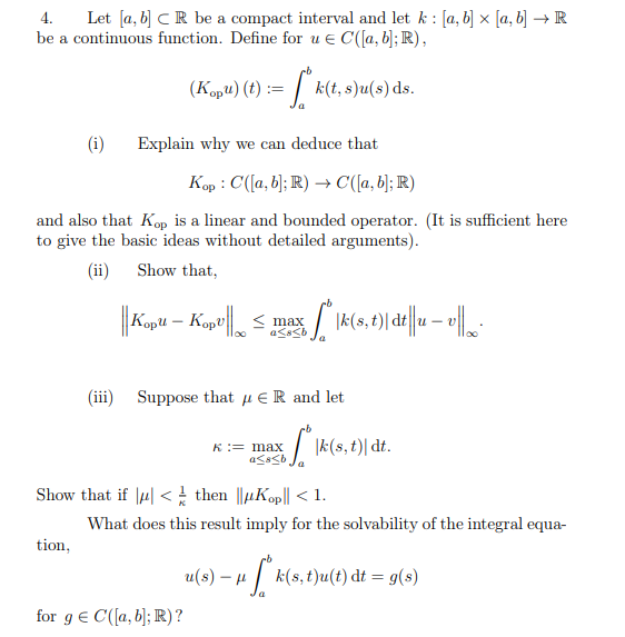 4. Let [a,b] C R be a compact interval and let k: [a,b] X [a,b] R...
