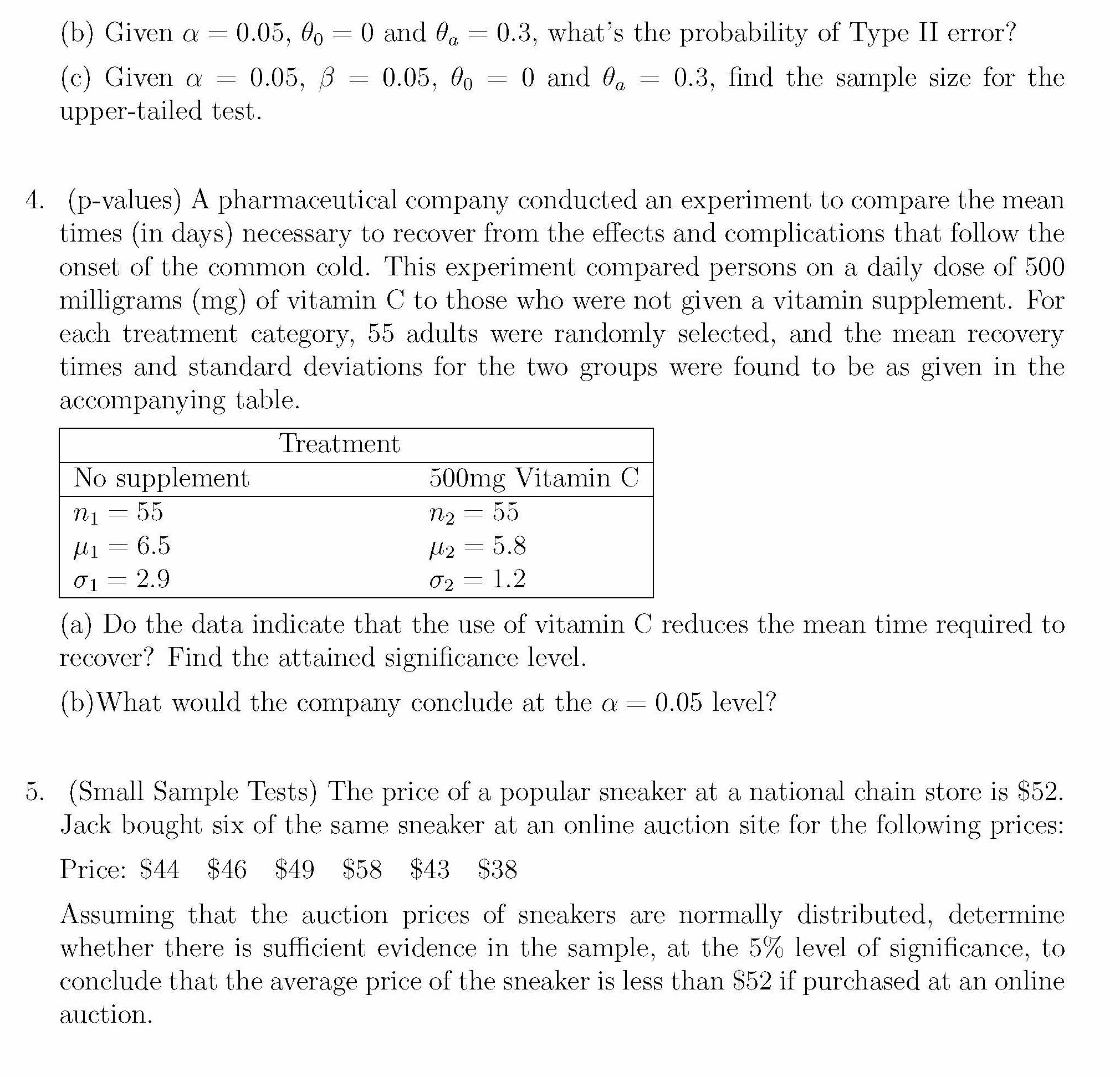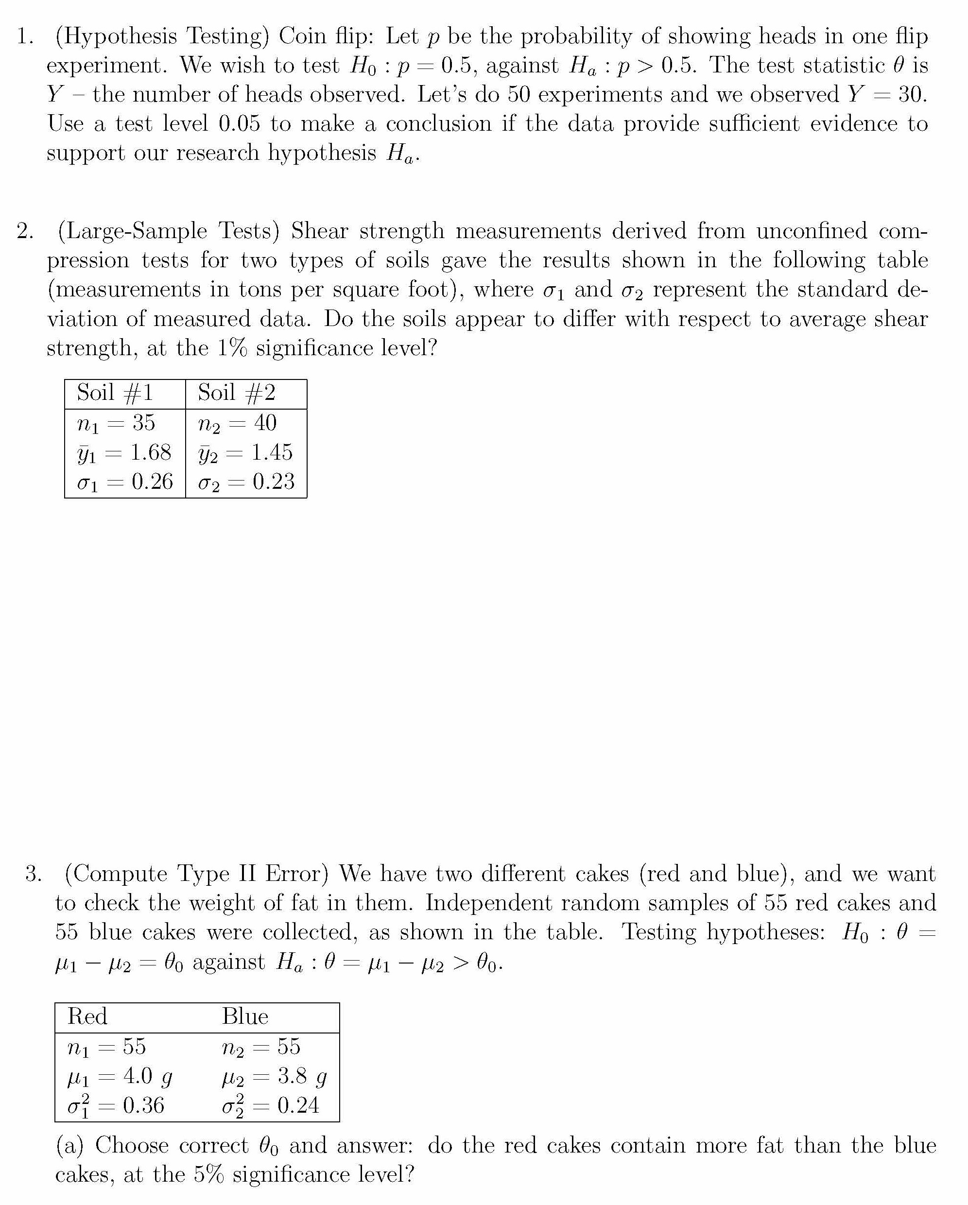 1. (Hypothesis Testing) Coin flip: Let p be the probability of show...