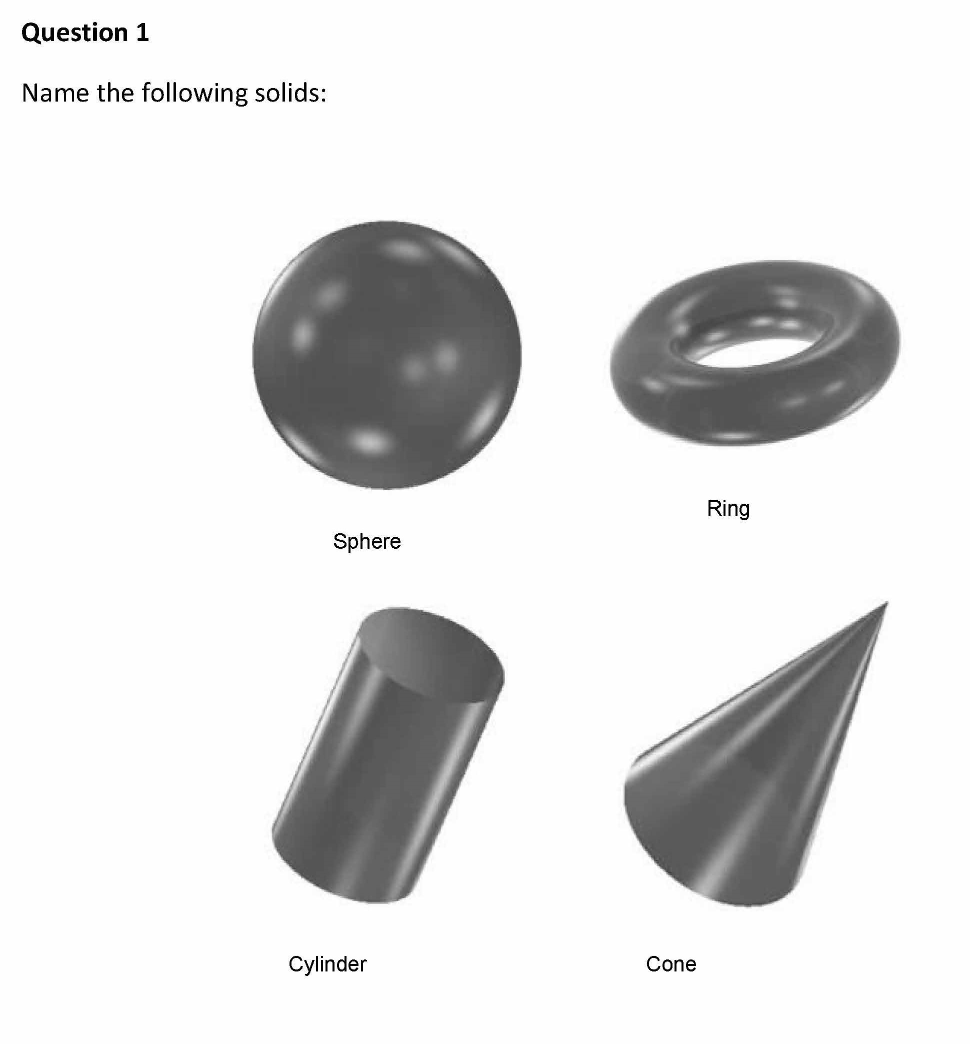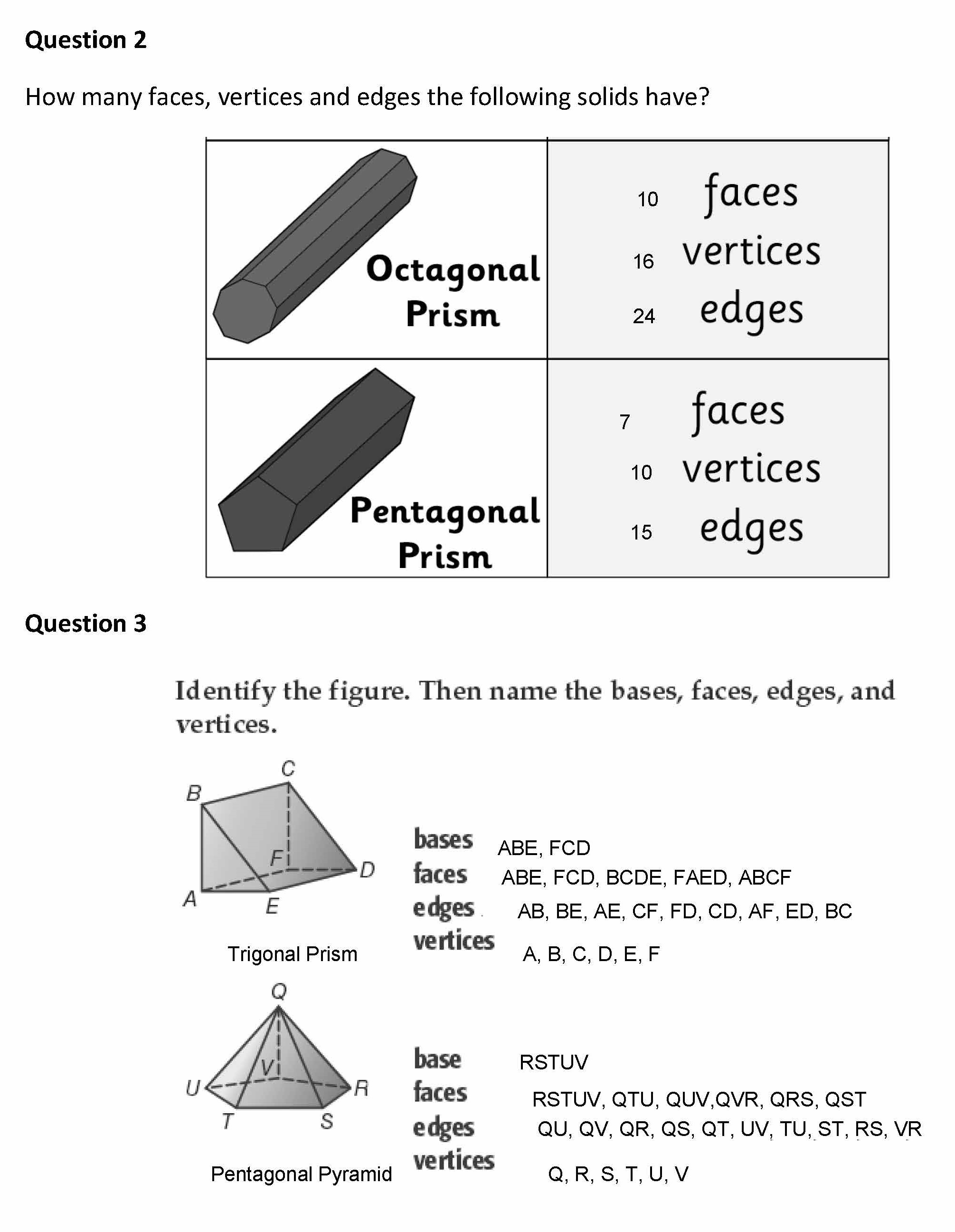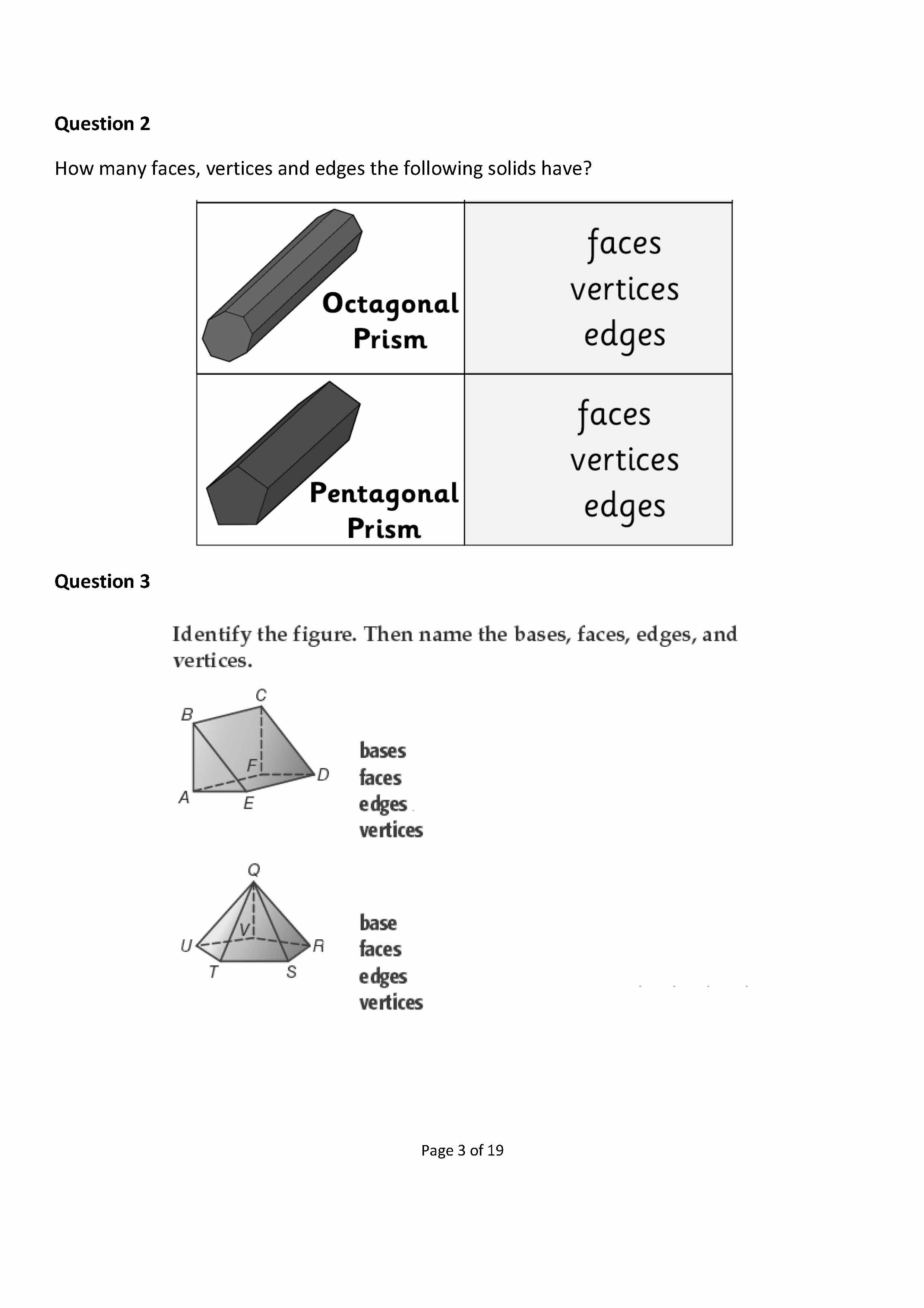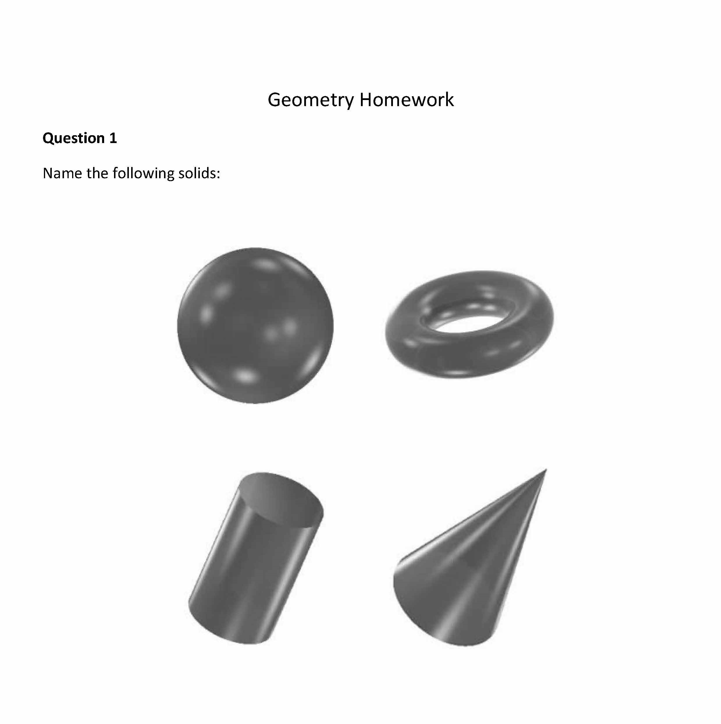 Geometry Homework Question 1 Name the following solids:Question 2...
