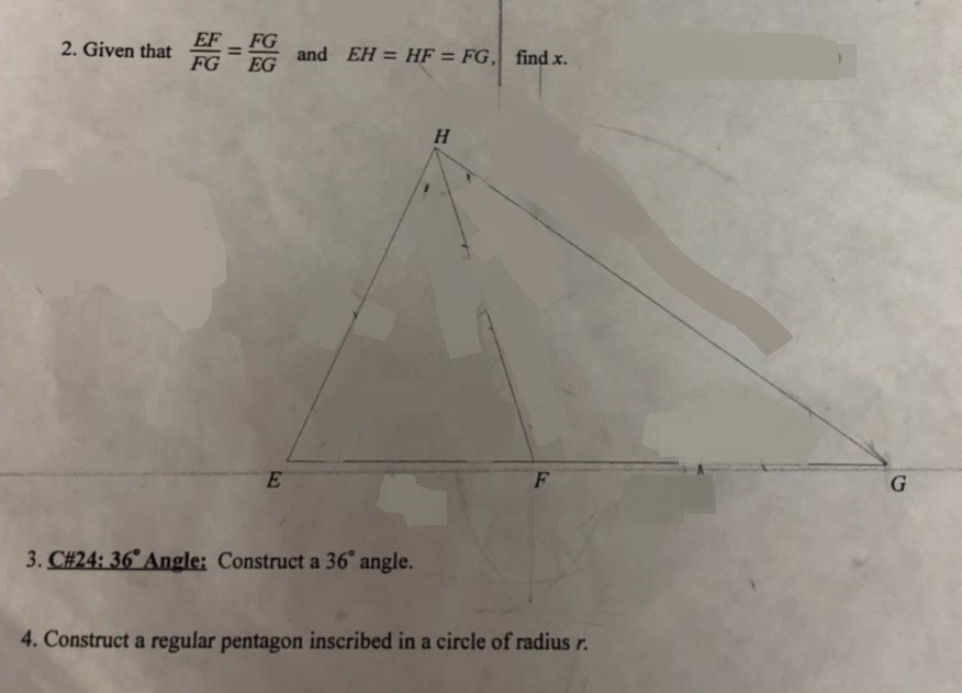 2. Given that EF = FG FG EG and EH = HF = FG, find x. PROOF R...