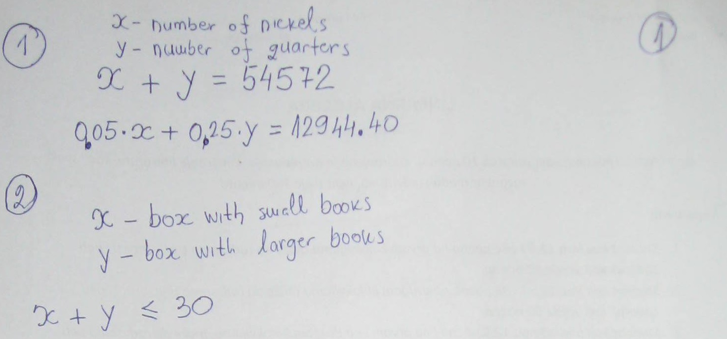 For Problem #s 1 and 2, show a valid system of equations/inequaliti...