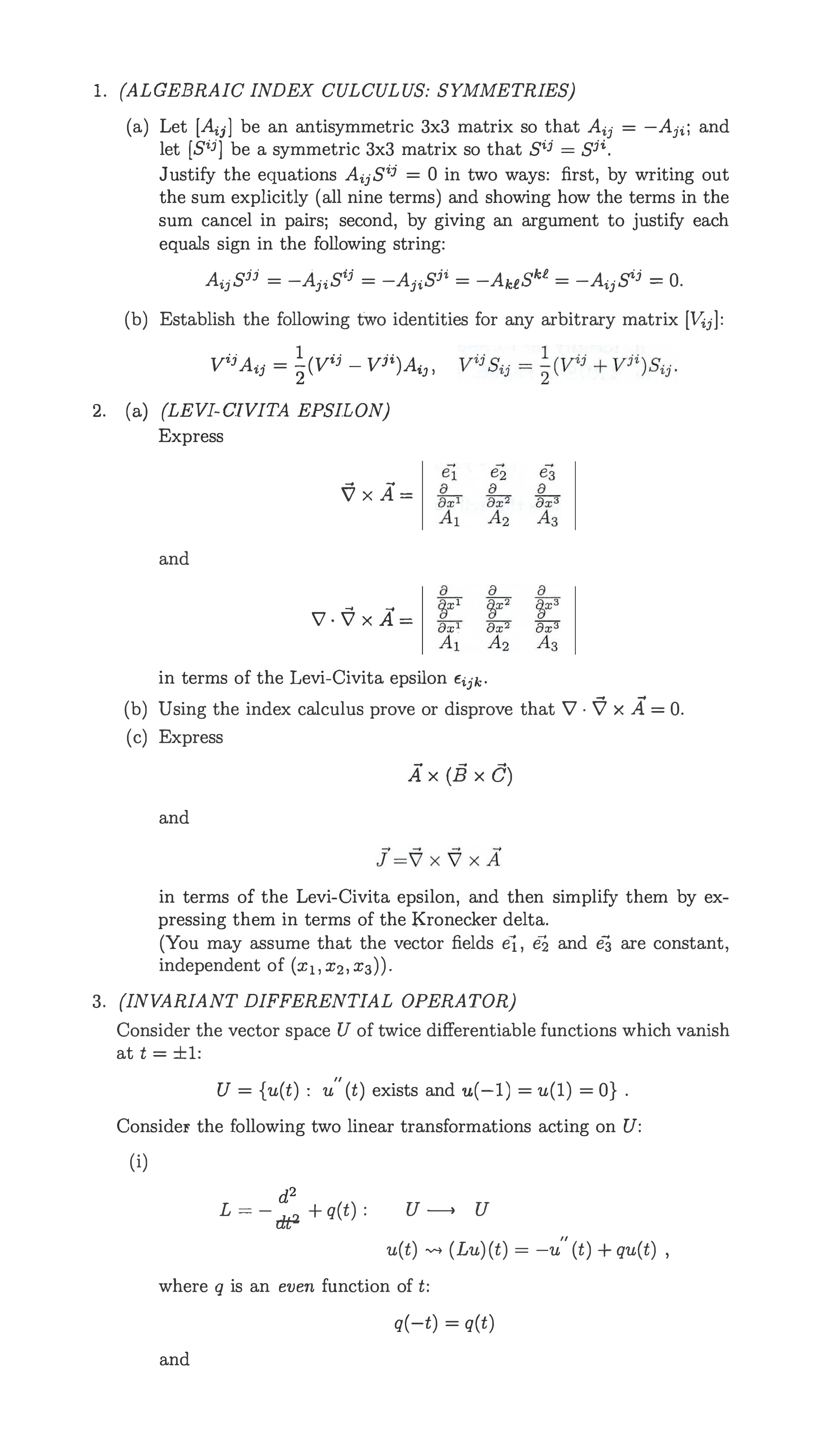 l. ( ALGEBRAIC INDEX CUL CUL US: SYMMETRIES) (a) Let [Aij] be an a...