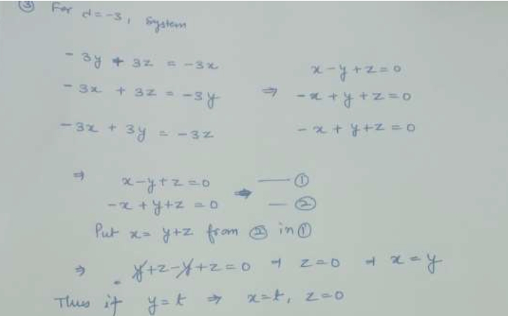 Solve the equation system for these values ​​of λ, -3, 0 and 3...