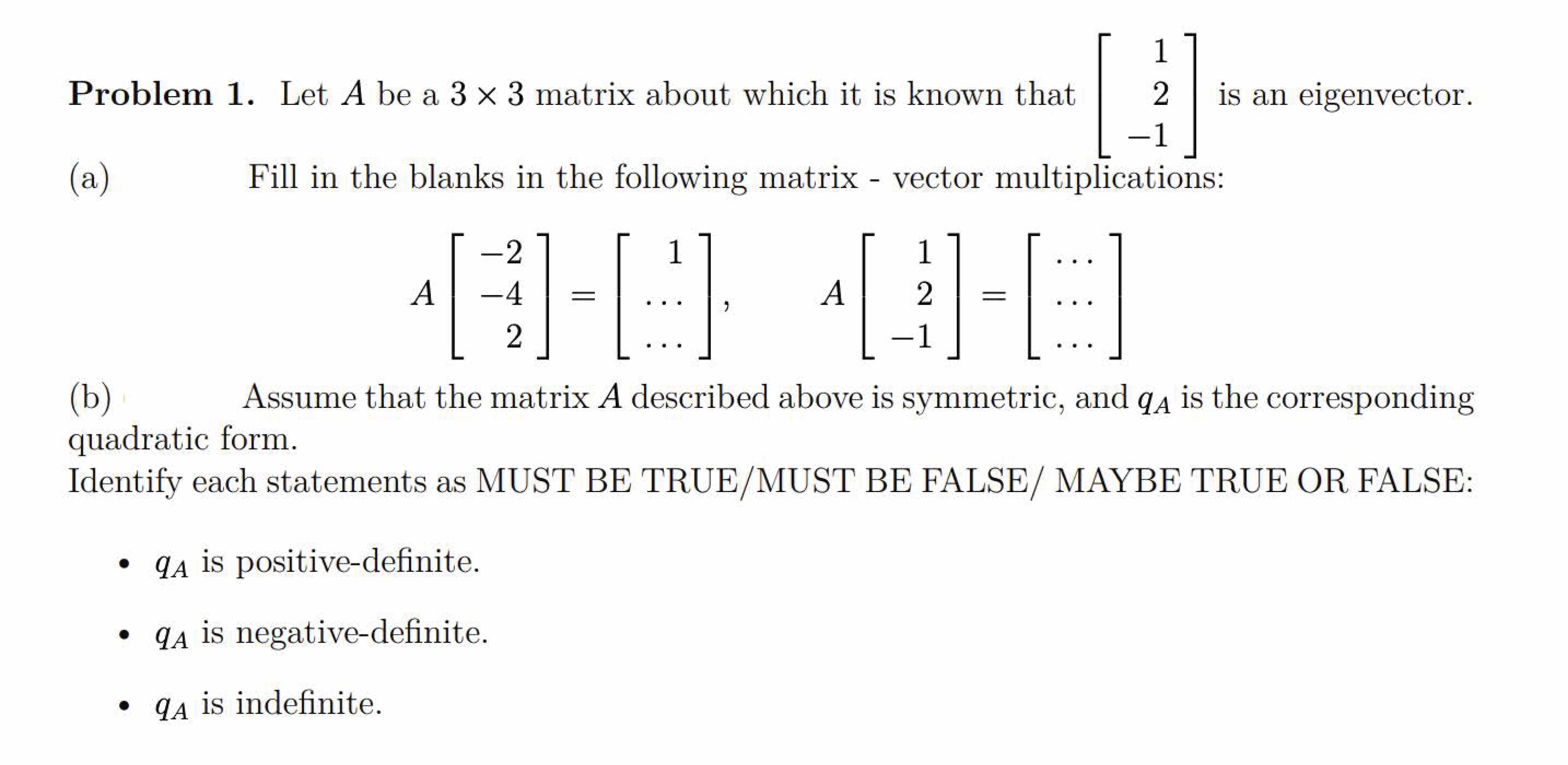 1 Problem 1. Let A be a 3 X 3 matrix about which it is known that ...