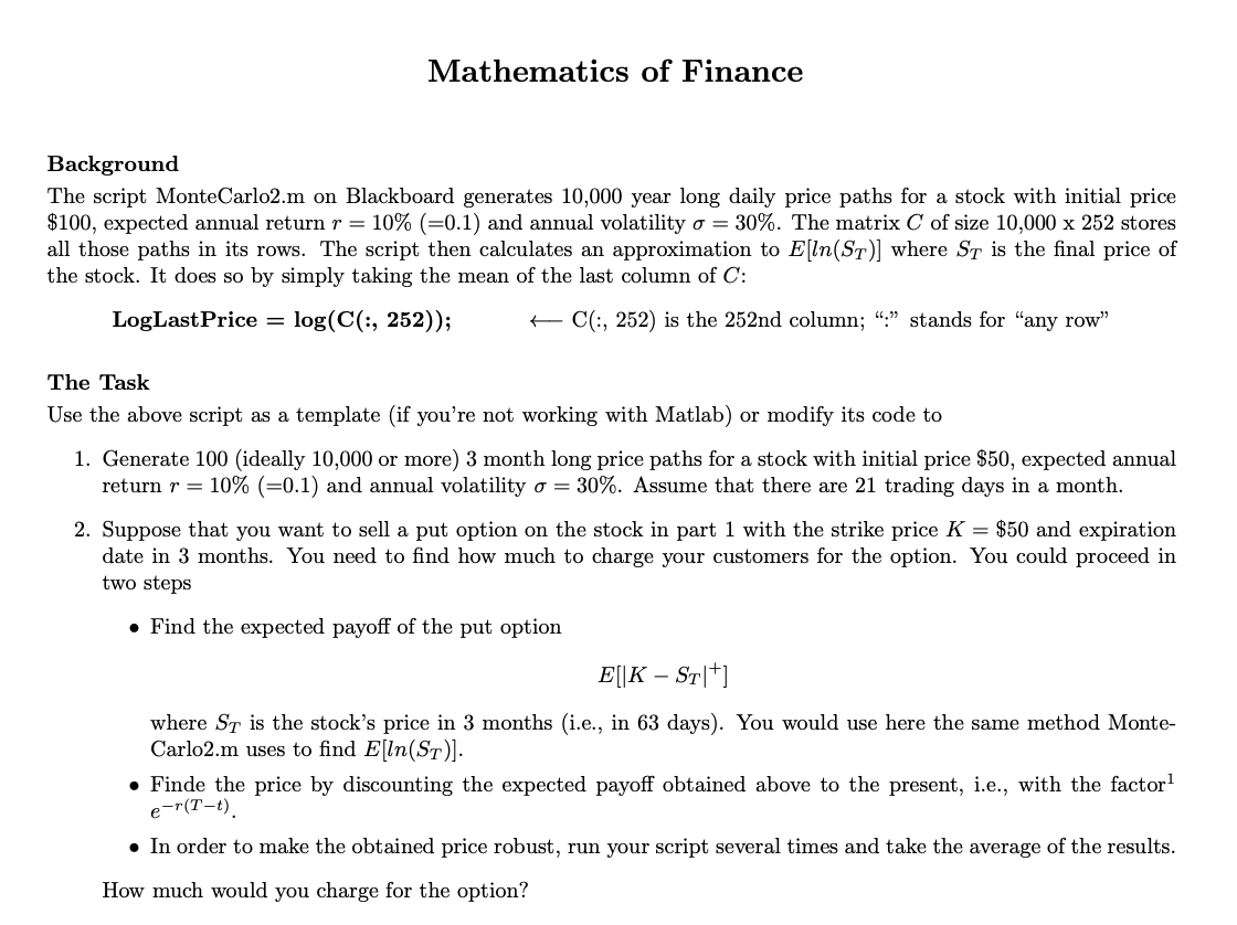 Mathematics of Finance Background The script MonteCarlo2.m on Bla...