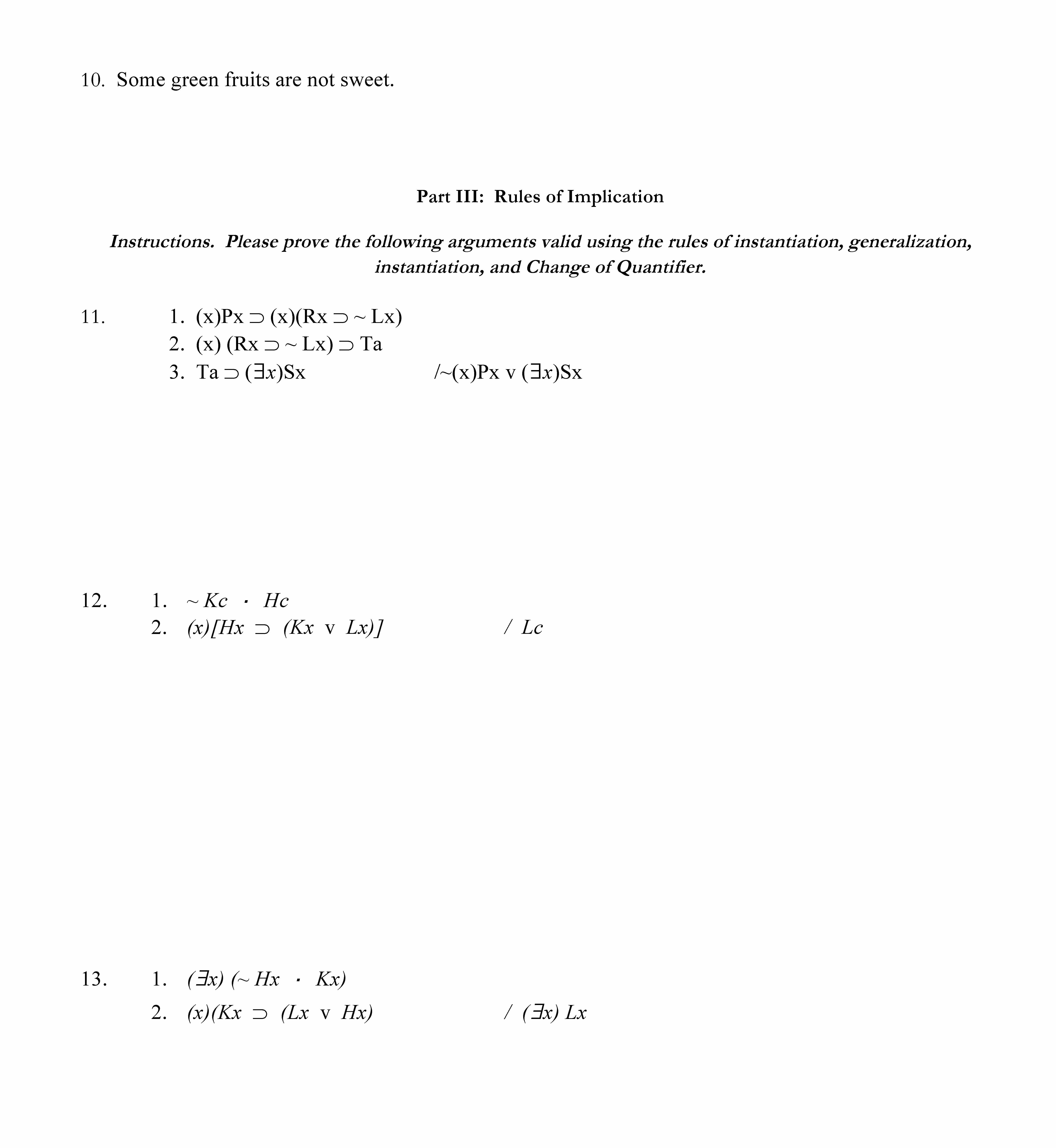 Predicate Logic Part Is True/False Instructions. Please circle Tr...